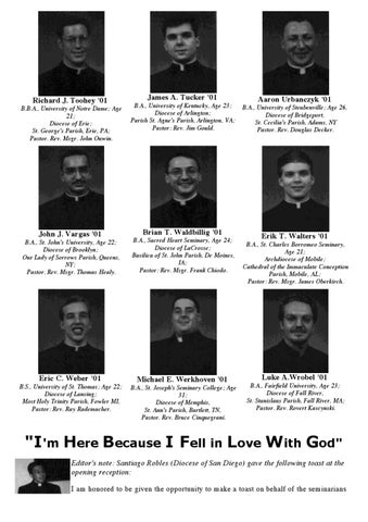 James A. Tucker '01 B.A., University of Kentucky, Age 23; Diocese of Arlington; Parish St. Agne's Parish, Arlington, VA; Pastor: Rev. Jim Gould.
