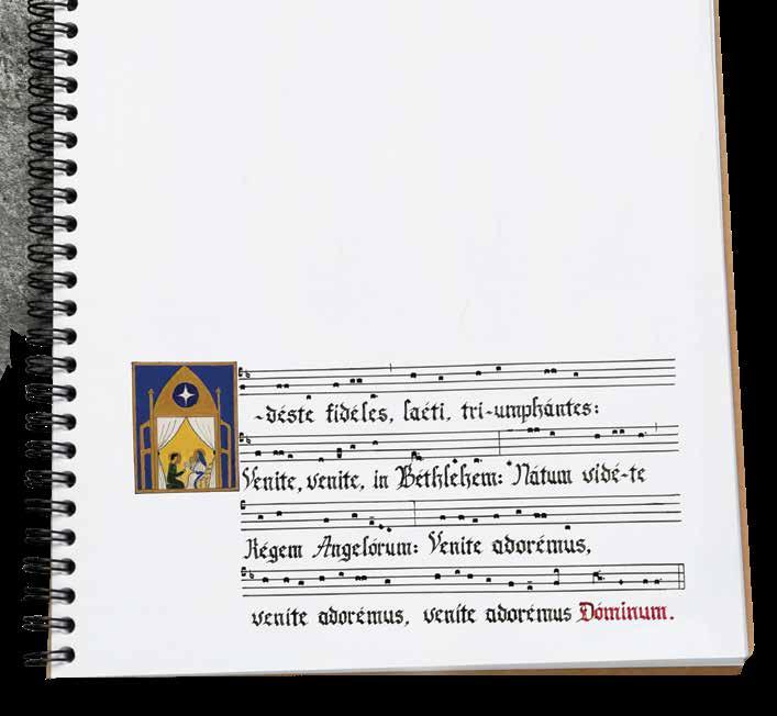 “In the spring of 2024, I was thinking of an ordination gift for my older brother who was preparing to be ordained. Someone recommended to me that I write him a set of vesting prayers. I thought that was a great idea, so I picked up calligraphy for a few months to try to make him the gift. I enjoyed it so much that I decided to go a step further and make a piece using calligraphy and chant based on Nat King Cole’s ‘Adeste Fideles.’ This is the beginning stage of a project that will include chant notation and other decoration, a gift for my family back home.”