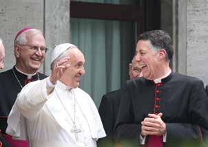 The photos in this issue reveal the tremendous joy that permeated the community once the white smoke was visible from the Sistine Chapel on May 8th. I was reminded of a similar photo from the last conclave in 2013. When Pope Benedict XVI left the Apostolic Palace for the last time, he flew via helicopter to Castel Gandolfo, flying very close to the College. Our seminarians and faculty quickly assembled on our rooftop, with American and Vatican flags, waving joyfully as Pope Benedict flew overhead. Some say you could see him looking down and waving back.
