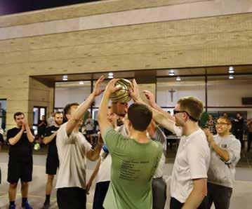 top to bottom: Seminarians compete in the College’s annual Hall Ball tournament; Jakob Wyder ‘26 (Saint Maron of Brooklyn), Rubén Castañeda ‘28 (Mobile), and Liam Daigle ‘28 (Worcester) in Ars.