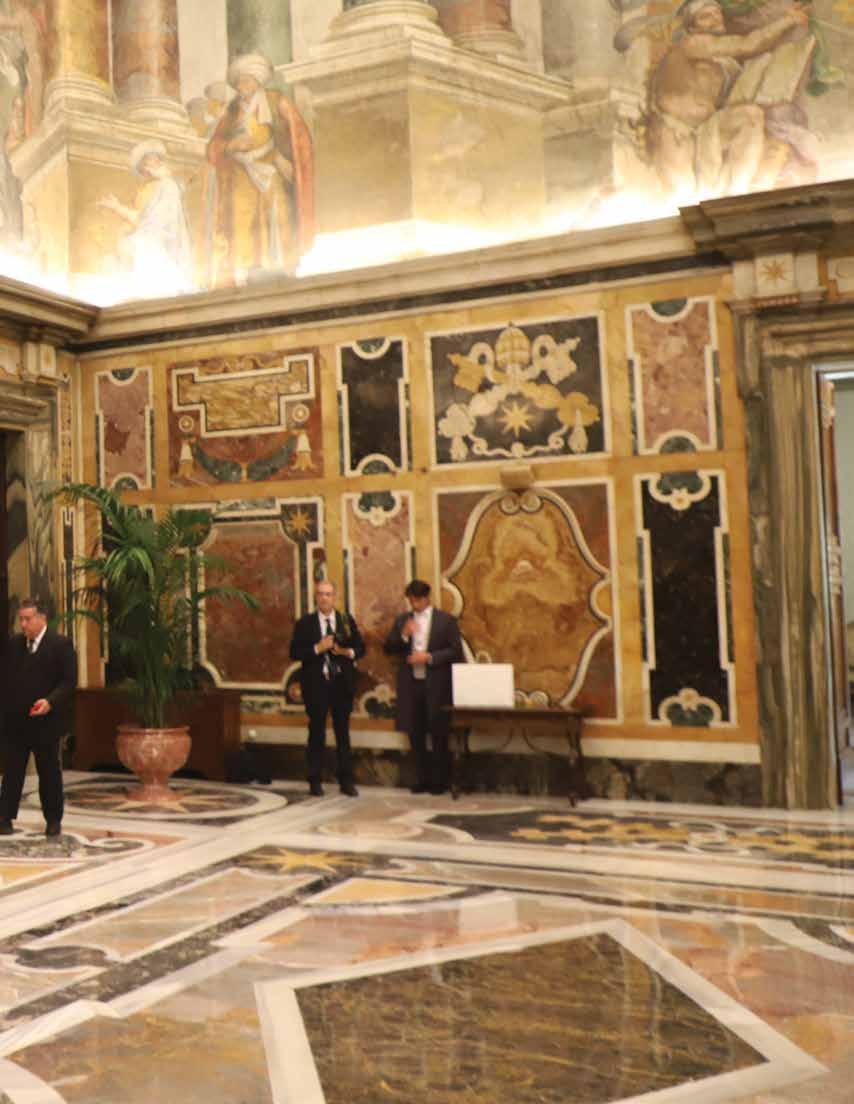 Over the official entrance of the College is a Latin inscription that reads, “The young men who have come here from the distant shores of America, looking upon the Vatican Hill, strengthen their faith and their love for the Roman Pontiff.”