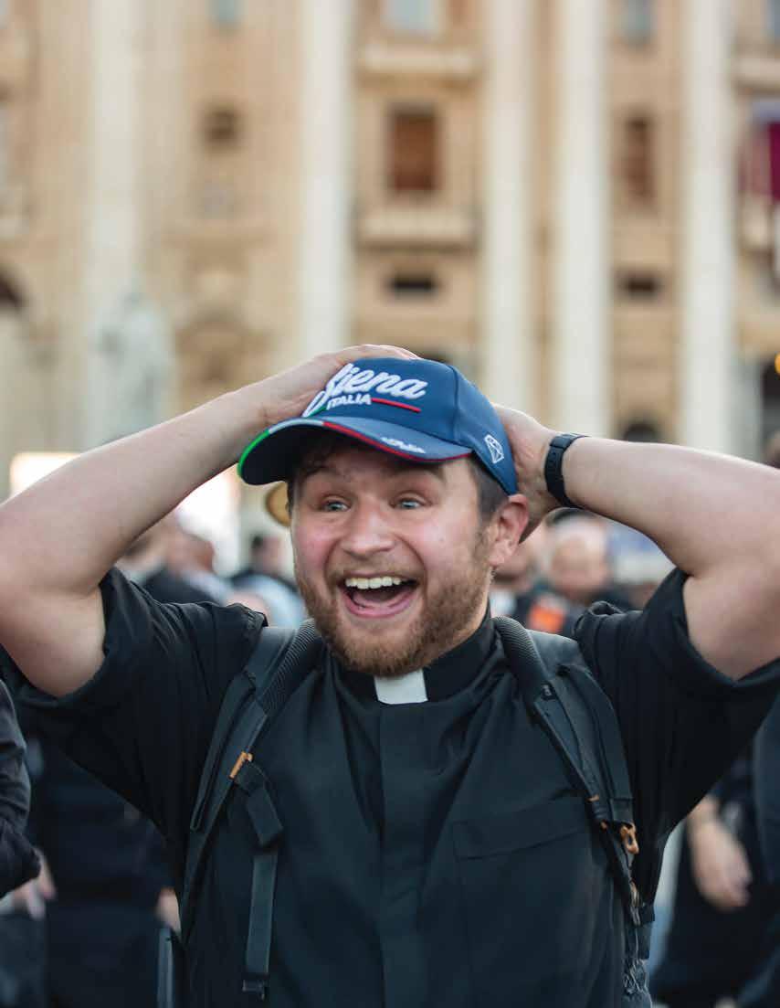 The joy captured on the face of Bruce Cargill ‘27, Diocese of Metuchen, in the cover photo, is an Easter joy. His expression—one of the purest and most genuine I have ever seen— comes after a period of mourning. Pope Francis passed away, and the seat was empty for some days. We could not look to the Holy Father, to the Rock of the Church, for there was no Holy Father. Bruce’s expression is one of surprise, like that of a child whose father returns unexpectedly from a long journey. For a moment he freezes in shock, excitement, and joy. Then comes the cry: “Guys! He’s here! Look—Dad’s home!” And Bruce’s expression comes with an anticipation of the future. “He’s here!” means, “Let’s run to him, sit at his feet, and listen to his stories.” I run to my father not just because his stories are interesting but because they order my soul and reveal the heavenly Father’s love for me.