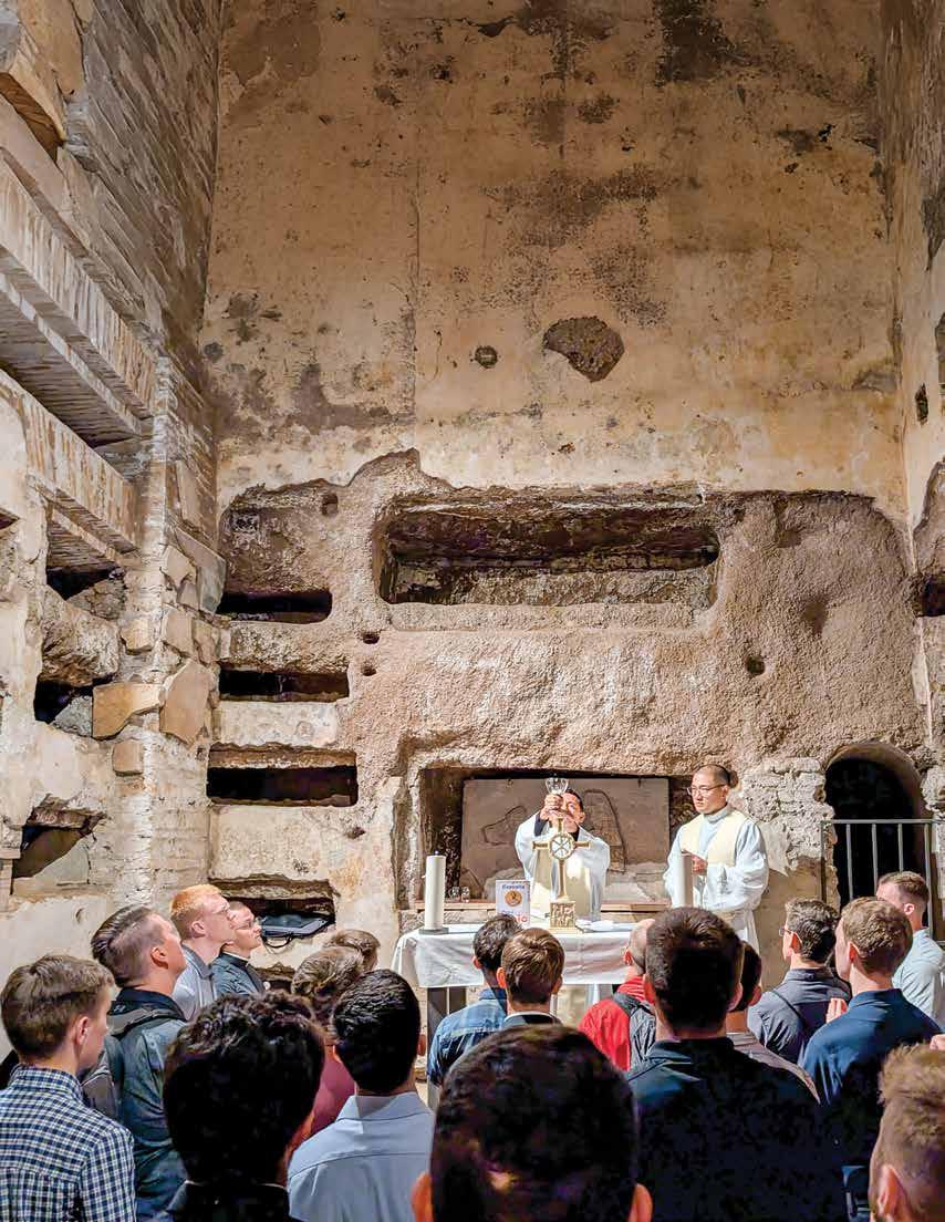 BACK COVER: Rev. Armando Tolosa celebrates Mass in the Catacombs of Saint Callistus.