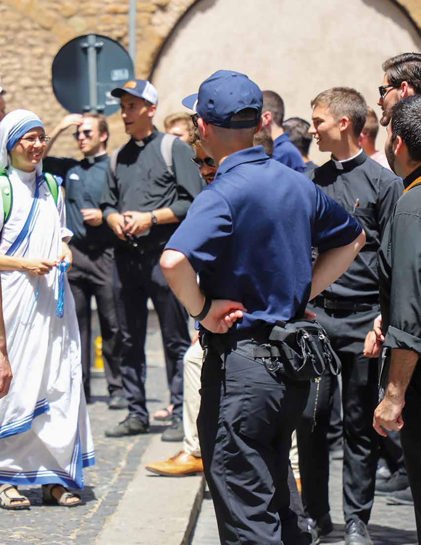 THIS PAGE: Sister Anastasia, M.C., on pilgrimage in Rome, meets seminarians and encourages them to become holy priests.