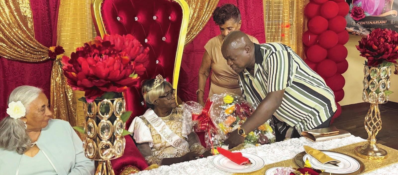 Leader of the PNCR and Opposition, Mr. Aubrey C. Norton attended the 100th birth anniversary of Ms. Vera Venture of Queenstown, Essequibo. On Thursday 25th April 2024, where he wished her long life, good health and happiness. The Party Leader presented her with a bouquet of flowers and other goodies on her birthday.