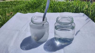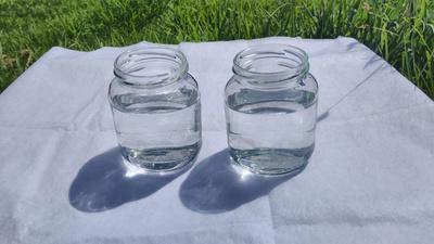 1. Primero vamos a llenar los dos recipientes con la misma cantidad de agua