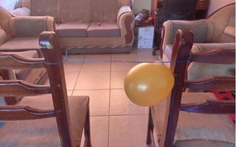 3. Colocar el globo inflado en un extremo y al otro extremo el globo desinflado.