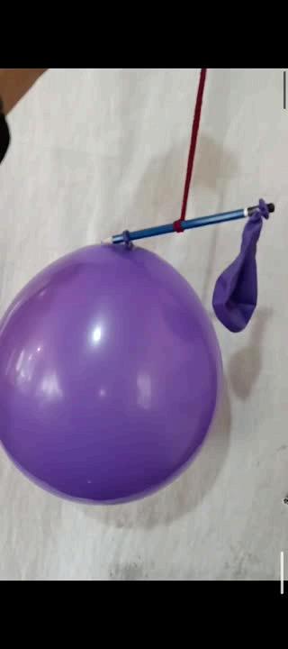 3. Finalmente, pegamos el globo a la cuerda con cinta adhesiva y lo soltamos