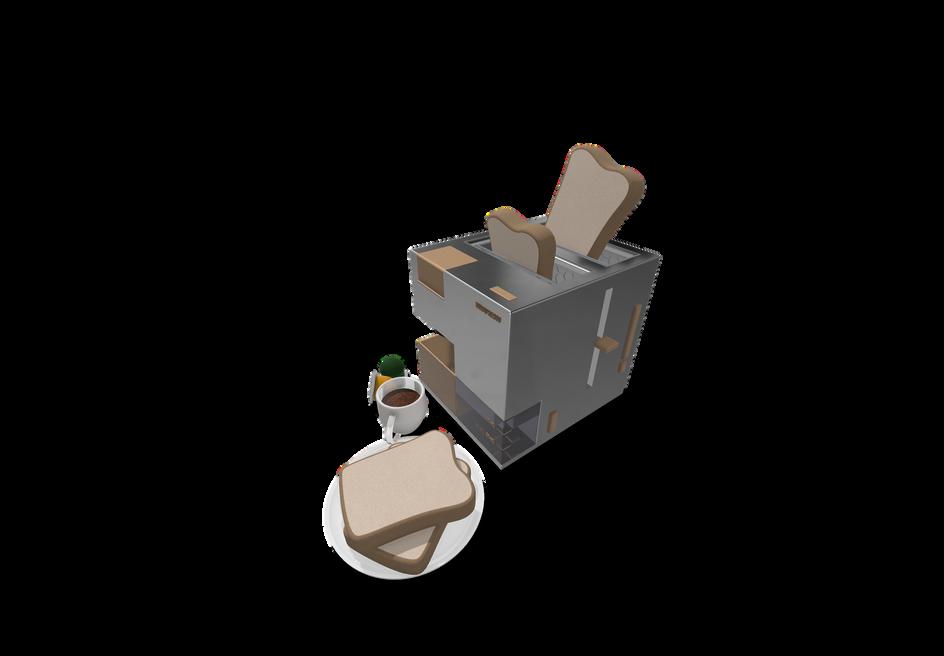 The ‘Toastpresso’ pop-up toaster got inspired by Marcel Breuer, a Hungarian-American designer and architecture. Its appearance of shape and aluminum texture attempts to evoke the sense of International style and geometrically of Whitney Museum and Church at St.John's Abbey. With the hexagonal grid design of the wire rage that inspired by the hexagon stained glass window at St.Jonh Abbey, it will create the texture of hexagon pattern on the toast.