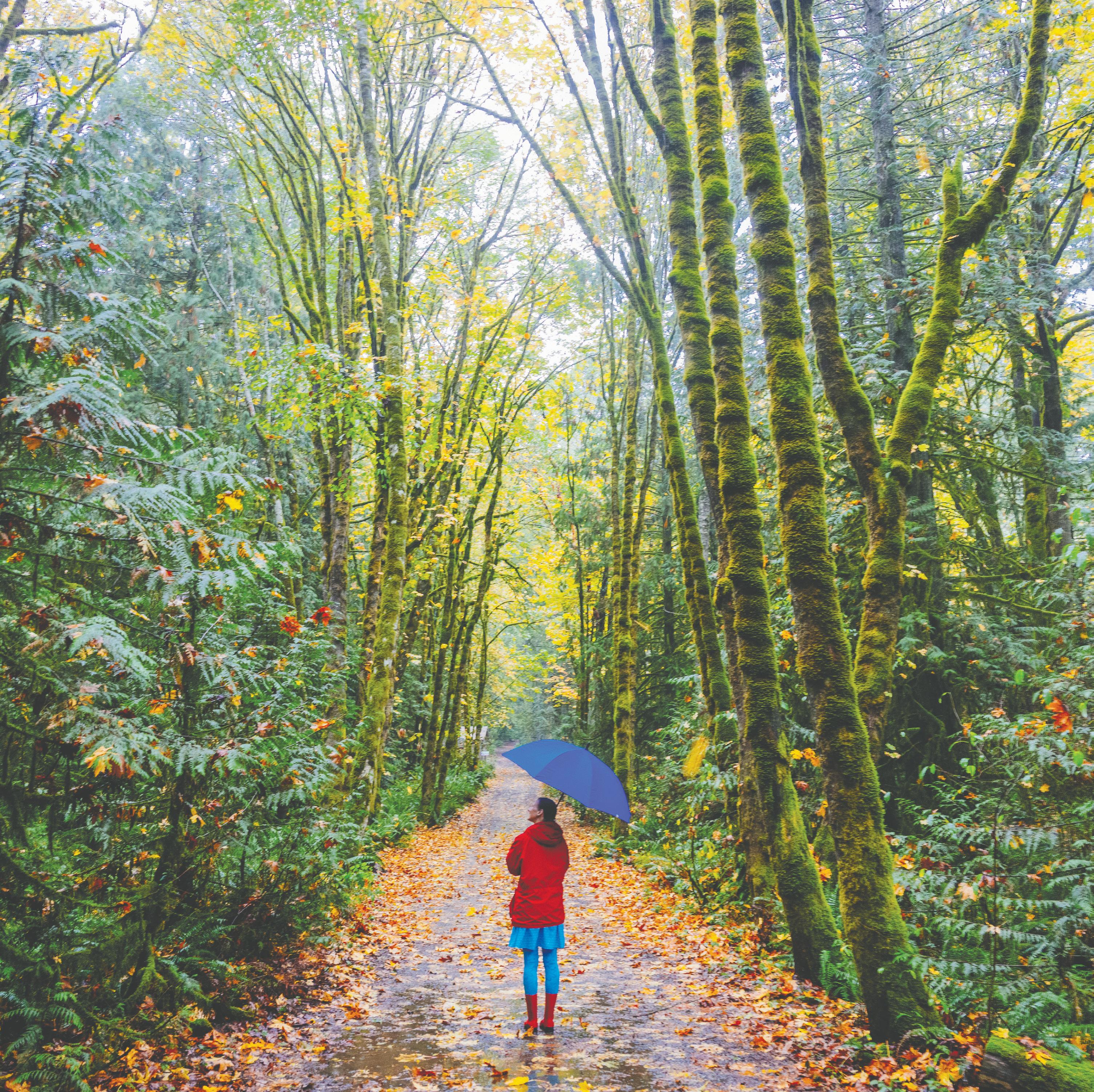 Cover: Amy White Schmitz with umbrella at Gazzam Lake entrance.