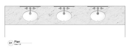 Legend: 01 Painted Wall 02 Wallcovering 03 Existing skirting repainted 04 Existing cornice relocated 05 Existing Cornice repainted 06 Existing Door repainted 07 Existing Wall Paneling repainted 08 Existing ceramic wall tile 09 New ceramic wall tile 10 Tile trim 11 Sink +Tap 12 Soap Dispenser 13 Wall Mirror 14 Existing hand dryer 15 Wall light 16 Urinal Divider 17 DOC M Pack 18 Toilet + Flush Plate 19 Toilet Roll Holder 20 Grab rail 21 New artwork 22 Fluted panel door 23 Hand towel tray (FF&E) 24 Bin 25 Grey granite Orbit Architects Blackfriars Road, London SE1 8HA 020 7593 3380 www.orbitarchitects.com info@orbitarchitect DO NOT SCALE FROM THIS DRAWING Verify all dimensions site TENDER WC Refurbishment, Great Room, Grosvenor House Hotel, W1 1912-Q0-001 T2 Type A-1 Proposed Typical Vanity & Mirror Details A/S A3 26.04.23 VH 01 Plan Scale 1:20 version date version notes author T1 As dwg As dwg Initial issue 02 Front Elevation Scale 1:20 03 Section Scale 1:20 04 Section Scale 1:20 05 Detail Scale 1:5 07 Detail Scale 1:5 06 Detail Scale 1:5 680 VARY EQ 680 680 VARY EQ 680 680 680 100 850 650 600 150 20 40 100 150 04 03 04 03 This drawing has been produced for for the project/site named and produced only for their benefit. Although reasonable endeavours have been taken see that the information contained on this drawing correct, should not be relied upon by any third party for any tender they prepare. Orbit Architects TENDER INFORMATION DISCLAIMER Grosvenor House Hotel, W1 FEBRUARY 2020 10 13 15 12 11 25 22 24 11 24 24 12 22 23 11 05 100 150 680 VARY-EQ VARY-EQ CL (Sink, tap & mirror) 520 160 520 VARY-EQ 520 160 520 160 CL (Wall light & bin) 05 Q0-001 06 Q0-001 600 850 20 60 150 320 60 12 13 23 23 EQ EQ C (Wall light & bin) C 400 Ø150 650 160 160 VARY-EQ 180 650 360 100 190 20 07 Q0-001 850 200 1350 60 50 50 50 50 1240 VARY VARY 08 08 Mirror Detail Scale 1:5 60 50 3 50 60 50 50 60 50 50 60 50 50 520 60 50 50 520 VARY EQ VARY EQ 160 520 160 520 160 160 20 20 Clear Mirror Sandblasting after removing mercury on the back of the mirror LED strip Polish chrome metal trim Polish chrome metal trim Notes: The amount of vanity and mirror unit vary based on actual space. Refer to each WCs drawings. VARY 25 25 CL 130 130 07 Q0-001 T2 26.07.23 VH Design and detail updated TYPE A VANITY TYPE B VANITY VANITY ISLAND TYPICAL VANITY DETAIL