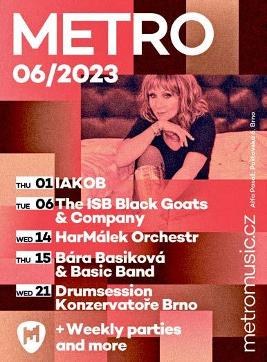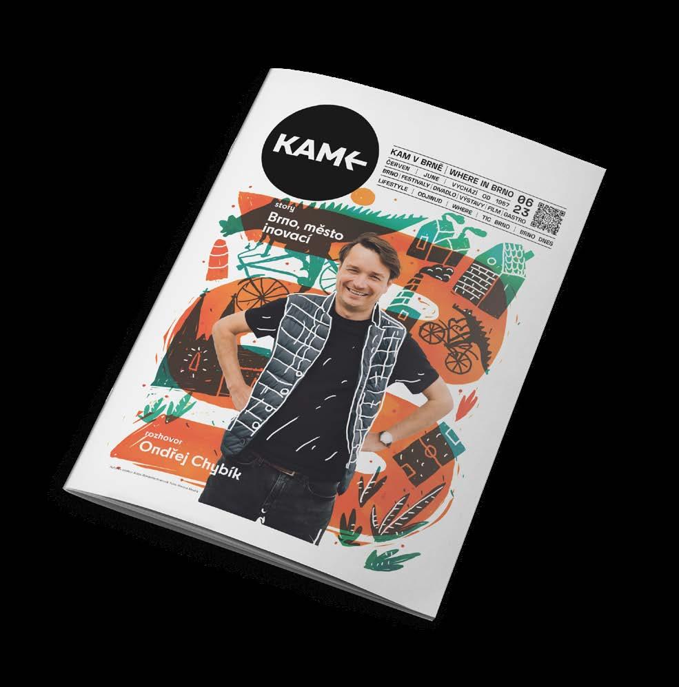 KAM v Brně… Vychází od roku 1957 | Číslo vydání: 6/2023 | MK ČR E 12197 | Vydává: TIC Brno, příspěvková organizace, Radnická 365/2, 602 00 Brno, www.ticbrno.cz | Dodává: Pocket media s.r.o., Jakubské nám. 644/3, 602 00 Brno | IČO: 04541227, DIČ: CZ-04541227 | e-mail: info@pocketmedia.cz | Redakce: redakce@pocketmedia.cz | Šéfredaktor: David Tieku | Editor: Filip Živný | Redakční okruh: Živný (živ), Radka Beránková (rb), Hana Drahokoupilová (hd), Bára Jurášková (jur), Tereza Holotíková (th), Miloš Henkrich (mh), Anna Svobodová, Sabina Minářová (sam), Robin Smith (rs) | Jazyková korektura: Lucie Pokorná | Grafika a sazba: Jindřiška Mikešová, Kamila Hrubešová | Autorka obálky: Adéla Wiederlechnerová, foto: Simona Modrá | Inzerce: obchod@pocketmedia.cz | + 420 608 101 550, + 420 604 239 957 | Přetisk materiálů pouze se souhlasem redakce | Příští vydání vychází: 1. 7. 2023 | Cena pro předplatitele 63 Kč | FB a IG: @kamwhere | Anglické texty jsou vytvářeny ve spolupráci s Robinem Smithem, Ritou Deanovou, Brno Daily a Brno Expat Centre | REDAKCE NENESE ODPOVĚDNOST ZA OBSAHOVOU SPRÁVNOST MATERIÁLŮ A INFORMACÍ, ZMĚNY PROGRAMŮ A REKLAM | Předplatné: info@pocketmedia.cz / shop.pocketmedia.cz
