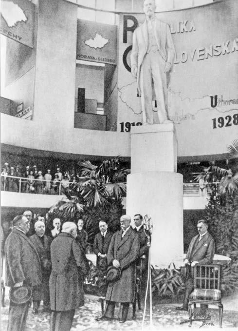 Tomáš Garrigue Masaryk při oficiální návštěvě Brna v roce 1928 před svou nadživotní sochou. Foto: archiv brněnského výstaviště