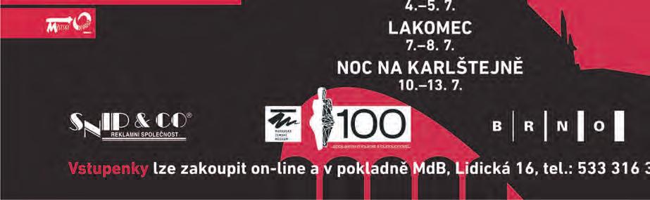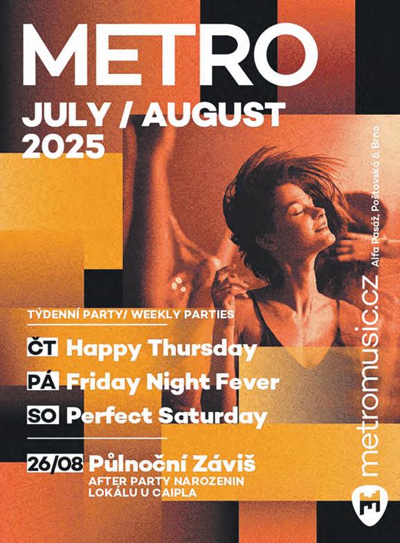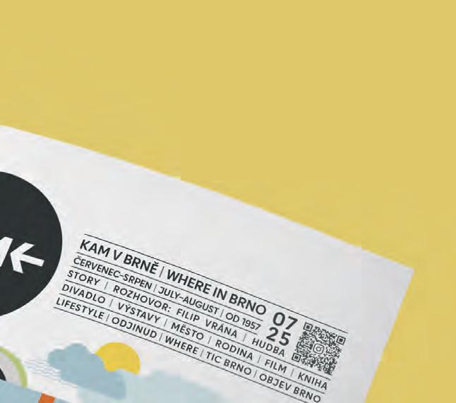 KAM v Brně… Vychází od roku 1957 | Číslo vydání: 7/8/2025 | MK ČR E 12197 | Vydává: TIC BRNO, příspěvková organizace, Radnická 365/2, 602 00 Brno, www.ticbrno.cz | Dodává: Pocket media s.r.o., Jakubské nám. 644/3, 602 00 Brno | IČO: 04541227, DIČ: CZ-04541227 | e-mail: info@pocketmedia.cz | Redakce: redakce@pocketmedia.cz | Šéfredaktor: David Tieku | Editor: Filip Živný | Redakční okruh: Živný (živ), Radka Beránková (rb), Karolína Hlubinková (kh), Miloš Henkrich (mh), Anna Svobodová, Anna Kupčáková (ak), Andrea Polnická (and), Adéla Uhrová (uhr), Tereza Vondrášková (von), Petra Antalová (ls) | Jazyková korektura: Lucie Pokorná | Grafická úprava: Jindřiška Mikešová | Sazba: Kamila Hrubešová | Autor ilustrace na obálce: Jiří Král | Foto: Viola Hertelová a Gabriela Eliáš | Inzerce: obchod@pocketmedia.cz | + 420 608 101 550, + 420 604 239 957 | Přetisk materiálů pouze se souhlasem redakce | Příští vydání vychází: 1. 9. 2025 | Cena pro předplatitele: 72 Kč | FB a IG: @kamwhere | Anglické texty jsou vytvářeny ve spolupráci s Ritou Deanovou, Brno Daily, Centrem pro cizince JMK a Brno Expat Centre | REDAKCE NENESE ODPOVĚDNOST ZA OBSAHOVOU SPRÁVNOST MATERIÁLŮ A INFORMACÍ, ZMĚNY PROGRAMŮ A REKLAM | Předplatné: info@pocketmedia.cz / shop.pocketmedia.cz