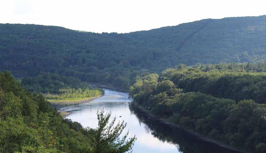 > The Delaware River winds through mountainous terrain between Port Jervis, N.Y., and Lackawaxen, Pa.