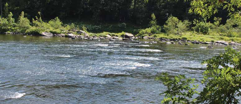 > The Delaware River is relatively narrow and shallow at the Minisink Ford at Lackawaxen, Pa. Joseph Brant’s raiders were crossing the river here when the battle began on July 22, 1779.