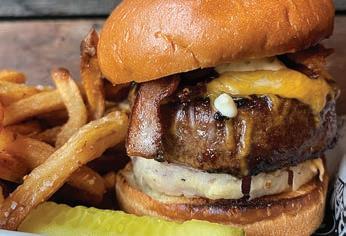 8 oz. blended short rib & brisket burger lettuce, tomato, & red onion on a toasted brioche roll with Fries.