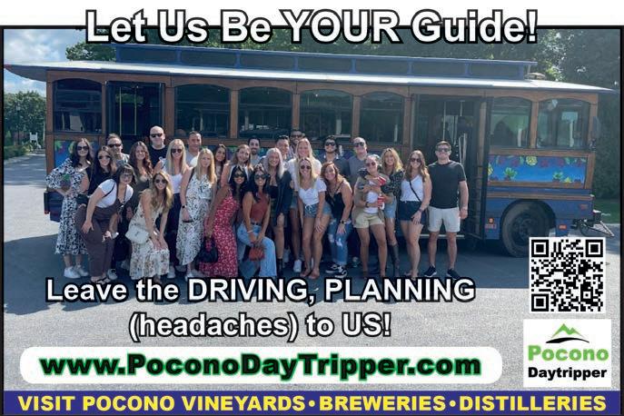 Eric Goehl (570) 350-6698 egoe@ptd.net ★ Mark McDonald (570) 730-4393 mark@poconoprint.com www.Pocono.Guide PoconoGuidebook Summer-Fall 2023 TO ADVERTISE CALL (570) 350-6698 or EMAIL ERIC GOEHL AT EGOE@PTD.NET Alex Auto Body & Repair 62 The Dreher Agency Insurance 58 For Your Health Medical Supply .................. 62 Garage Doors & Openers Install & Repair 60 Ken’s Auto Service .......................................... 60 4 Queens of Jaxx Boutique 144 Handbags, Jewelry & more! American Candle ......................................... 135 Jewelry, Gifts, Home Decor & more Asparagus Sunshine 130 Vintage, Salvaged & Up-Cycled & Antiques Baker y, Village Farmer ................................ 104 Biedronka Polish ........................................... 126 Deli Grocery Store Bulldog Liquidators 134 Name Brands for Less! Carroll & Carroll Booksellers..................... 140 Castle Inn Shoppes 32 Jewelry, Gifts, Toys & more! Chocolate Works .......................................... 127 Specialty Chocolates & More Country Kettle Candy & Gift Store 141 Dunkelberger’s Sports Outfitters 140 Ear thlight Natural Foods ........................... 125 Full Service Grocery European Deli / Smak 145 Every DOG! 124 Pet Food, Supplies & More! Fireworks Outlet 2 Flag Store Yard-Home Decor & more! ..... 121 Four Sisters Winery...................................... 120 Wine Tastings & Sales Gram-ma’s Country Corner 132 Gifts, Crafts, Home Decor & more Homegrown Cannabis Store & Lounge .... 13 Products & Service House of Candles 145 Jean Yetter's 122 Gifts, Jewelry, Home Decor & Much More Main St. Jukebox .......................................... 142 Record Store: LPs, CDs, 45s and More Morghan Rake Coffee Roasters 138 Loose Leaf Tea, Tea Accessories & More Mountain View Vineyard .............................. 14 Winery, Brewery, Distillery Native American Gift Shop 115 @ Pocono Indian Museum Odd-Lot Outlet .................................................. 2 Closeouts & Bargains Oil & Spice Co. 21 Unique Local & World Products Adventure Sports ........................................ 106 Delaware River Trips & Ski Rentals Allegheny Creek Brewing Co Beer Tastings 18 Alvin’s ATV Off Road Playground ............... 40 Arcade Era Video & other games .............. 118 Big Wheel Roller Skating 117 Chamberlain Canoes 111 Delaware River Trips Chocolate Works .......................................... 127 Build & Decorate Edible Chocolate Crafts Claws N’ Paws Animal Park 105 Deerhead Inn Jazz Club 68 Edge of the Woods Outfitters .................. 113 River Trips, Bike Rentals, Hiking Gear Four Sisters Winery - Wine Tastings & Sales 120 Go Karts - Paint Ball & Mini Golf 119 Guided Historic Tours of Castle Inn ............. 35 Impact Zone ..................................................... 19 Bounce Maze, Laser Tag, Arcade & more! Klues Escape Room ..................................... 112 Main Street Makery 139 Candy Making, Cheese Making, Soap Making Mountain View Vineyard .............................. 14 Wine, Beer, Spirit Tastings Notara School of Dance & Acting 116 Pocono Indian Museum 115 Pocono Pistol Range ........................................ 3 Pocono Rocks! ............................................... 110 Climbing Wall, Bounce Houses & more! Pocono Snake & Animal Farm 119 Poke-A-Nose Pottery 108 Paint Your Own Pottery S&S Speedways Indoor Go-Karts ............ 117 Shawnee Playhouse 114 Shooting for the Moon 128 Spiritual Classes & Counseling Tolino Vineyards Wine Tasting & Tours....... 120 Trolley Tours Historic & Wine Tours 34 Airplane Tours ...................................... 25 Alvin’s ATV Off Road Playground 40 Bath & Beauty Boutique 39 Bik ing Trails ........................................... 24 Campground Guide ........................... 38 Delaware River Trips 22 Diners 39 FREE! Wine Tastings 25 - M&M Vineyard Guided Historic Tours of Castle Inn ... 35 Historic Castle Inn............................... 32 Cafe/Ice Cream, Tours, Shops Mine Tours & Museum 37 Natural Soaps, Lotions & more! 39 Shawnee Inn & Golf Resort ............. 26 Dining, Brewery & more! Lake Naomi Real Estate 56 MC TA Pony Plus 57 Retro Fitness ..................................................... 61 Salvation Army Thrift Store ......................... 58 Signature Training Academy 59 All purpose gym & classes See Page 133 MENU BOOK LLC • PO BOX 1290 • STROUDSBURG, PA 18360 Olde Engine Works 8 Antiques & Collectibles Co-Op Pocono Bazaar Flea Market ...................... 146 Pocono Candle & Gifts 131 Pocono Farmstand & Nursery 136 Pocono Soap Lotions, Balms, Gifts & more! 139 Puppy Burrow, Puppies & Supplies ............ 15 Shooting for the Moon .............................. 128 Cr ystals, Herbs, Jewelry & more! Spice Bazaar 101 Tepee Town .................................................... 137 Western Clothing, Boots, Hats & Jewelry The Chic Farmhouse 129 Gifts, Home Decor, Crafts & more The Gun Place ............................................... 143 Tolino Vineyards Wine Tasting & Tours ... 120 Treasure Hunt Outlet Store 47 Village Farmer & Bakery 104 White Dragon Comics ................................... 20 Video & Board Games & more! Yousef Jewelry & Repair 144 Yuppy Puppy 133 Puppies, Kittens, Birds, Reptiles, Fish 940 Golf n’ Fun ................................................. 45 A J’s Pizza & Parm House (Dining) 55 Amish Farmers Market 54 Baby Boomers Cafe ........................................ 51 Bada Boom Fireworks ................................... 45 Dom N Ali (Dining) 50 Estate Sales 52 Harmony Beverage ........................................ 48 Beer, Country Store & more! Lake Harmony Inn 54 Lodging & Water Sports Morgan Gallery, Fine Art & Framing 53 Murphy’s Loft (Dining) .................................. 49 Peterson’s Souvenirs, Ski & Cycle ................ 53 Piggy’s Restaurant (Dining) 52 Shenanigans, Nick’s, Louie’s (Dining) 46 Sweet Cravings Ic