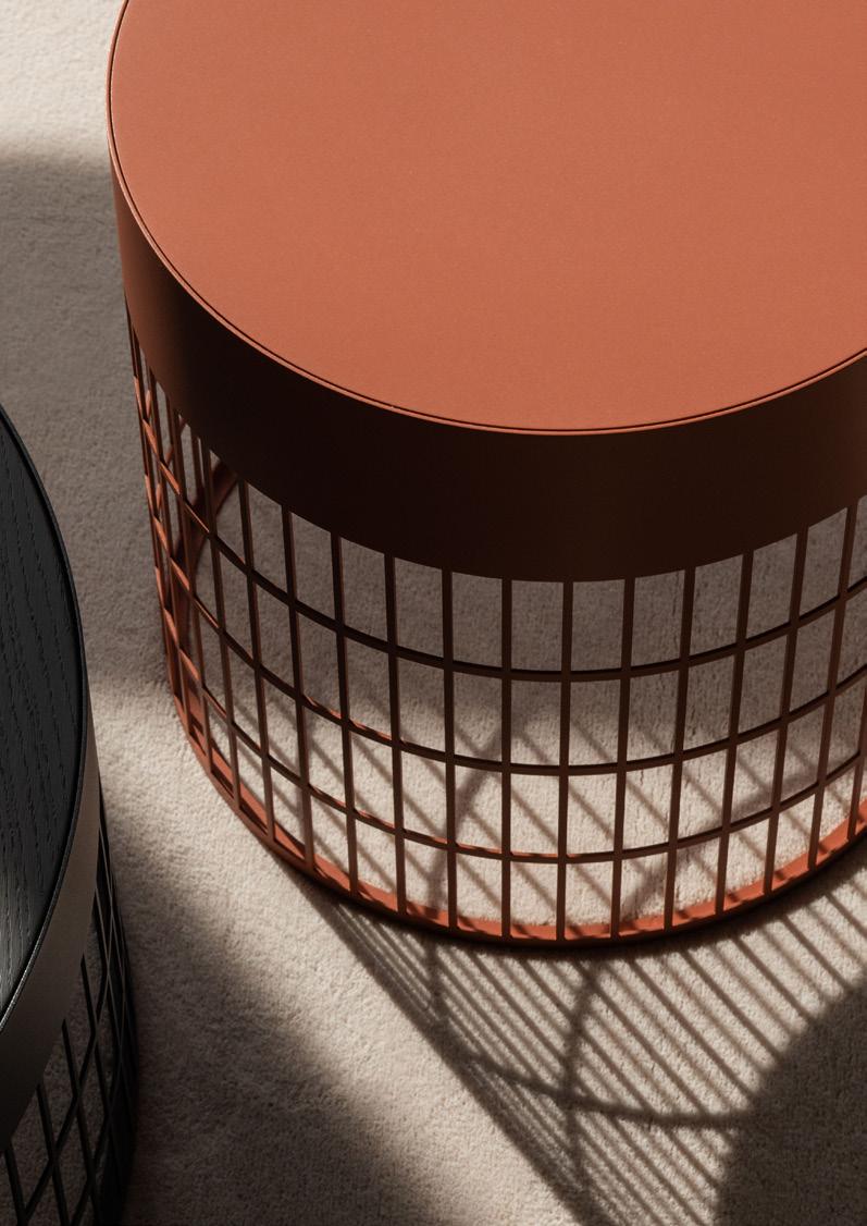 Dans la série de tables Mesh, le studio de conception Raw Color joue avec la densité des couleurs et des matériaux. La grille perforée alterne les ouvertures et fermetures. Les tables ont ainsi une allure aérienne, et la tablette semble flotter. Simultanément, la structure graphique de Mesh crée un jeu d’ombres intéressant sur le sol. Le design reflète la méthode de travail de Raw Color, dans laquelle l’effet de couleur du volume est le point de départ, dans ce cas, d’une interaction entre les densités et les combinaisons de matériaux.
