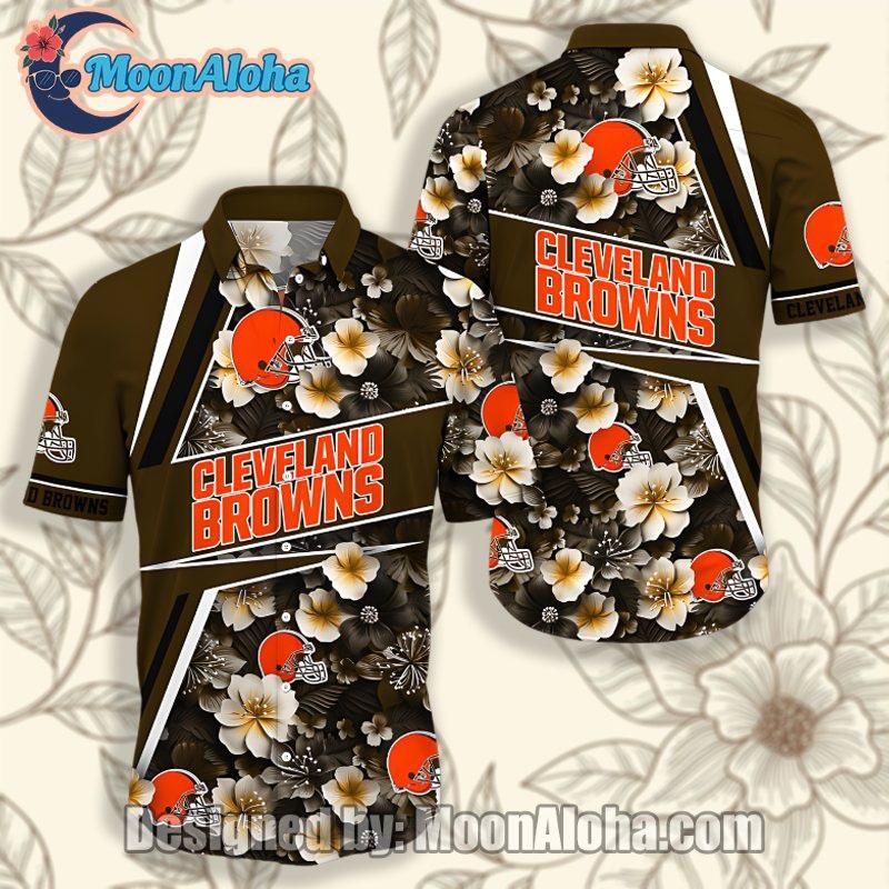 Ifyou'readedicatedfanoftheClevelandBrownsandlovetoshowcaseyourteamspirit instyle,thentheClevelandBrownsTropicalFloralAlohaPrintShirtistheperfect additiontoyourwardrobe Thisshirtcombinesteampridewithatropicalaesthetic, makingitastandoutchoiceforanyoccasion
