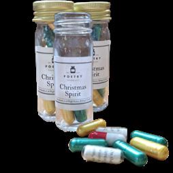 These colourful little vials are brimful with Christmas cheer, containing (non-edible!) poetry capsules, each with a line of poetry to lift the spirits this festive season. Provided in a customisable prescription bag.