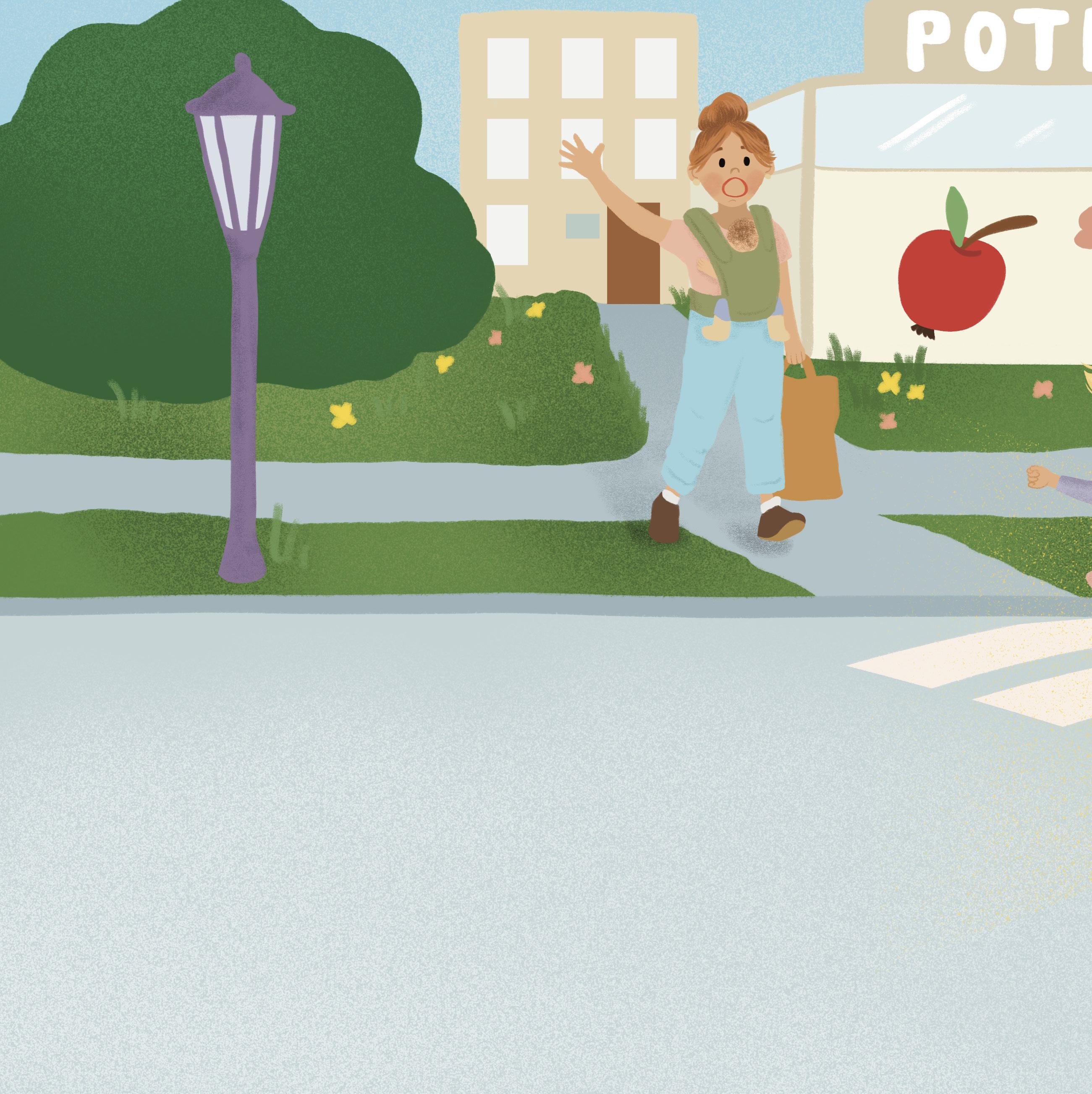 „Tút, tút,“ zatroubí najednou červené auto, co jede z levé strany, a rychle brzdí, aby do holčičky nevrazilo.