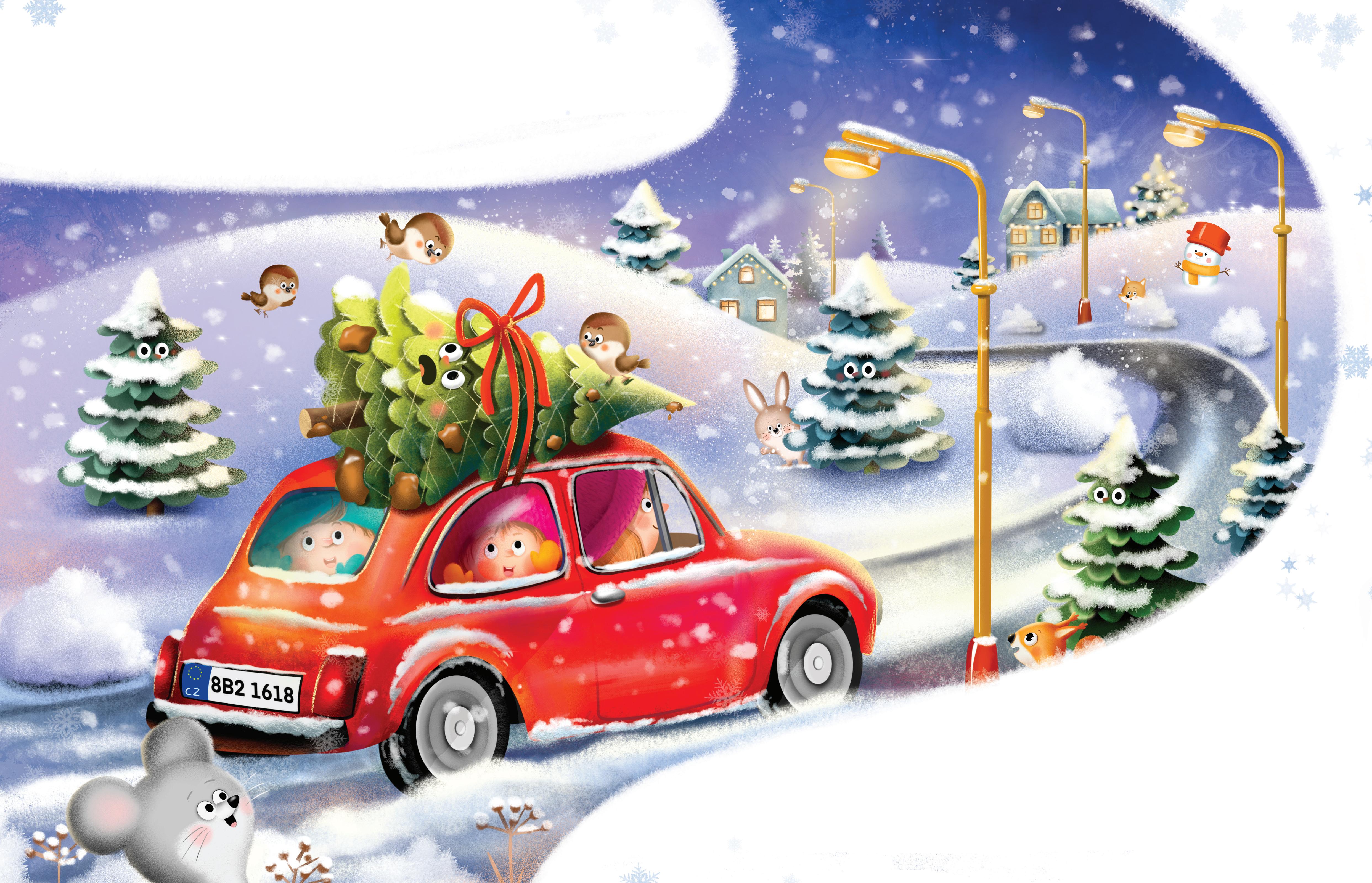 Jiskřička si odfrkl, utřel si z nosu visící smůlu a zadíval se na světélky překypující město. Třeba, když ze sebe udělám ošklivý stromeček, tak si mě nikdo nevybere a vrátí mě zpátky do lesa. Zamyslel se a začal si na sebe házet bláto, které našel pod sebou. Než se však stačil celý oházet, přišla k němu rodina s dvěma dětmi. Holčička mu začala tahat za dolní větvičky, až ho to zasvědilo a starší chlapeček se na něj upřeně díval, jako by věděl, co má Jiskřička za lubem.
