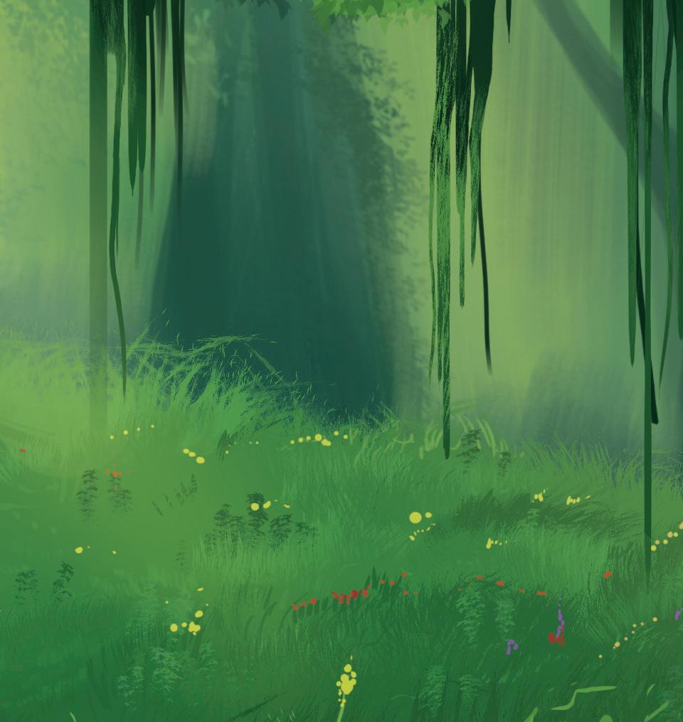 barvičky v zavřeném koutě půdy. To jsou takové barvy, které šamšulové používají, aby splynuli s okolím. Natřou se takovou čarodějnou barvou a ta barva hned pozná, odkud na šamšuly někdo kouká a co je za šamšulem. Takže když je třeba za šamšulem strom, barva to pozná. To se pak zbarví do podoby kůry stromu, takže ten, kdo na šamšula kouká, vidí jen strom s kůrou. Jakmile ale šamšul vystrčí nos zpoza kmene stromu, barva hned pozná, že ve směru pohledu je tráva, a zbarví se do podoby trávy. Ale přece jen jí to chviličku, malinkatou chviličku trvá. Tak se šamšul v mžiku natřel, obličej, ruce, kalhoty, botky, čepici i kazajku, a vyběhl ven před stodolu a rychle se přimknul ke zdi.