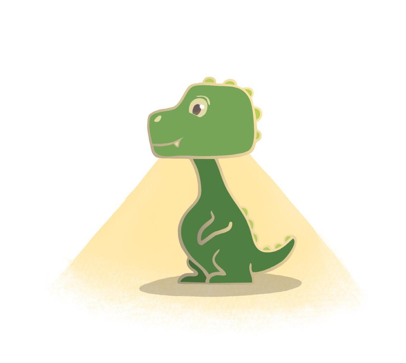 Když ji rozsvítil, malý modrý dinosaurus vrhal na stěny měkké světlo, které