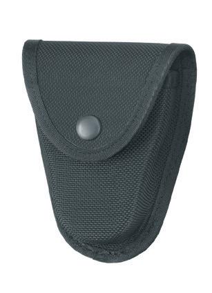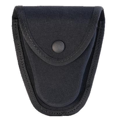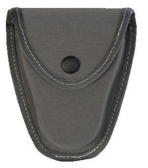 The hand cuff pouch for hinged cuffs has a close top, snap retention with preformed top opening that allows the cuffs to be easily inserted and deployed.