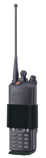 Fits most popular radios. Elastic tie-down with snap adjusts to hold radios of various heights.