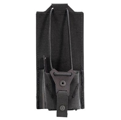 The single pistol mag pouch has a slick opentop design for uniform appearance. To keep your pistol mag secure and quickly deployable, the pouch comes with our patented removable and adjustable Magazine Retention System (MRS) Patent No 10,962,318 and 11,747,104