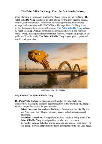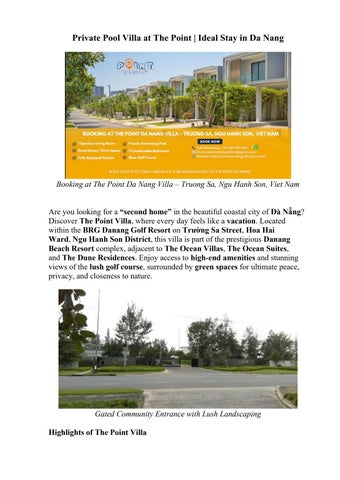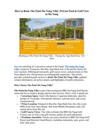 Booking at BRG Golf Villa Da Nang | The Point Resort – Luxury 3BR Private Pool with Full Amenities Stay at BRG Golf Villa Da Nang | The Point Resort, a luxury 3BR private pool villa with full amenities, stunning golf & beachfront views, perfect for families, groups, or golf enthusiasts seeking the ultimate holiday in Da Nang. ✨ Each villa offers: Private swimming pool Spacious garden & guest house 1 large living room 3 comfortable bedrooms Fully equipped kitchen Near golf course Easy access to airport, city center & attractions We are committed to delivering a relaxing, private, and world-class holiday for every guest. Call/WhatsApp: +84 905 926 803 Email: pointbookingofficial@gmail.com Website: https://pointbookingofficial.com/en Book now for your unforgettable Da Nang getaway!