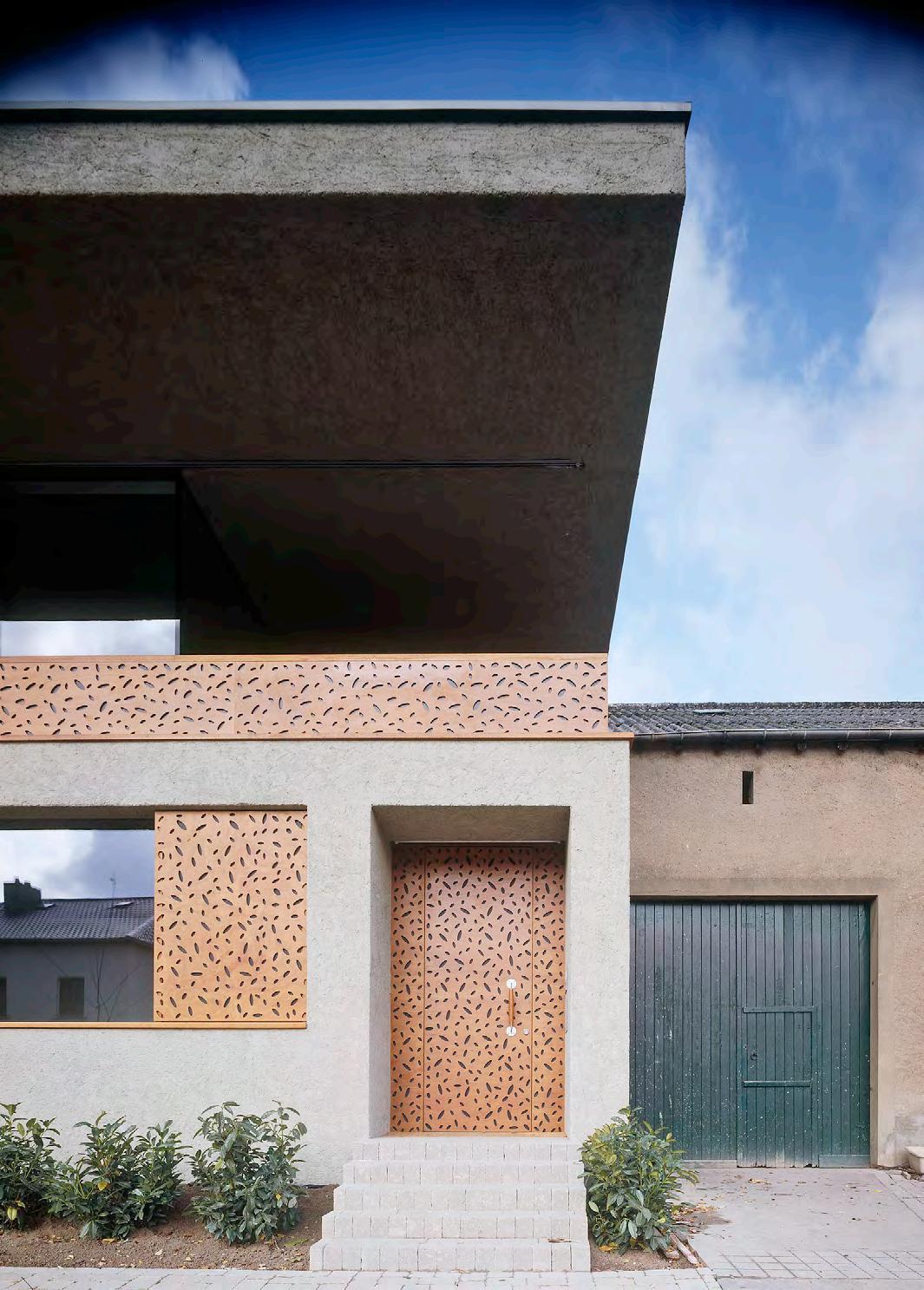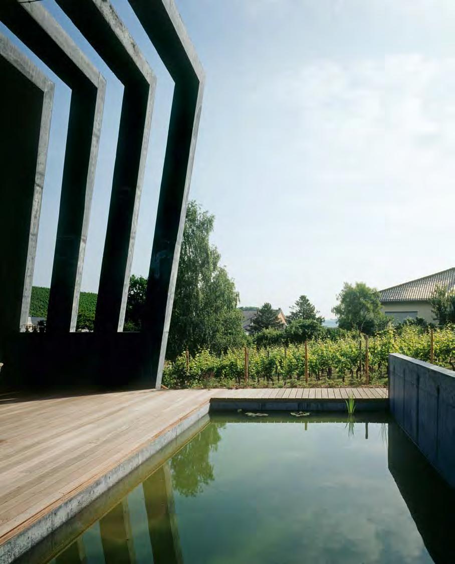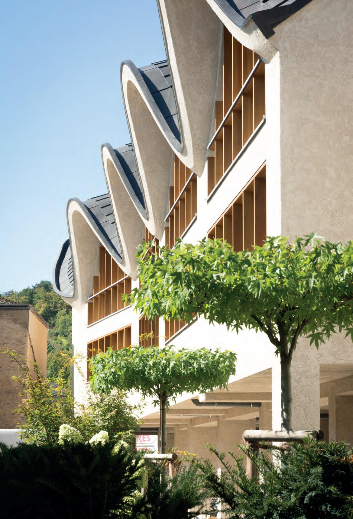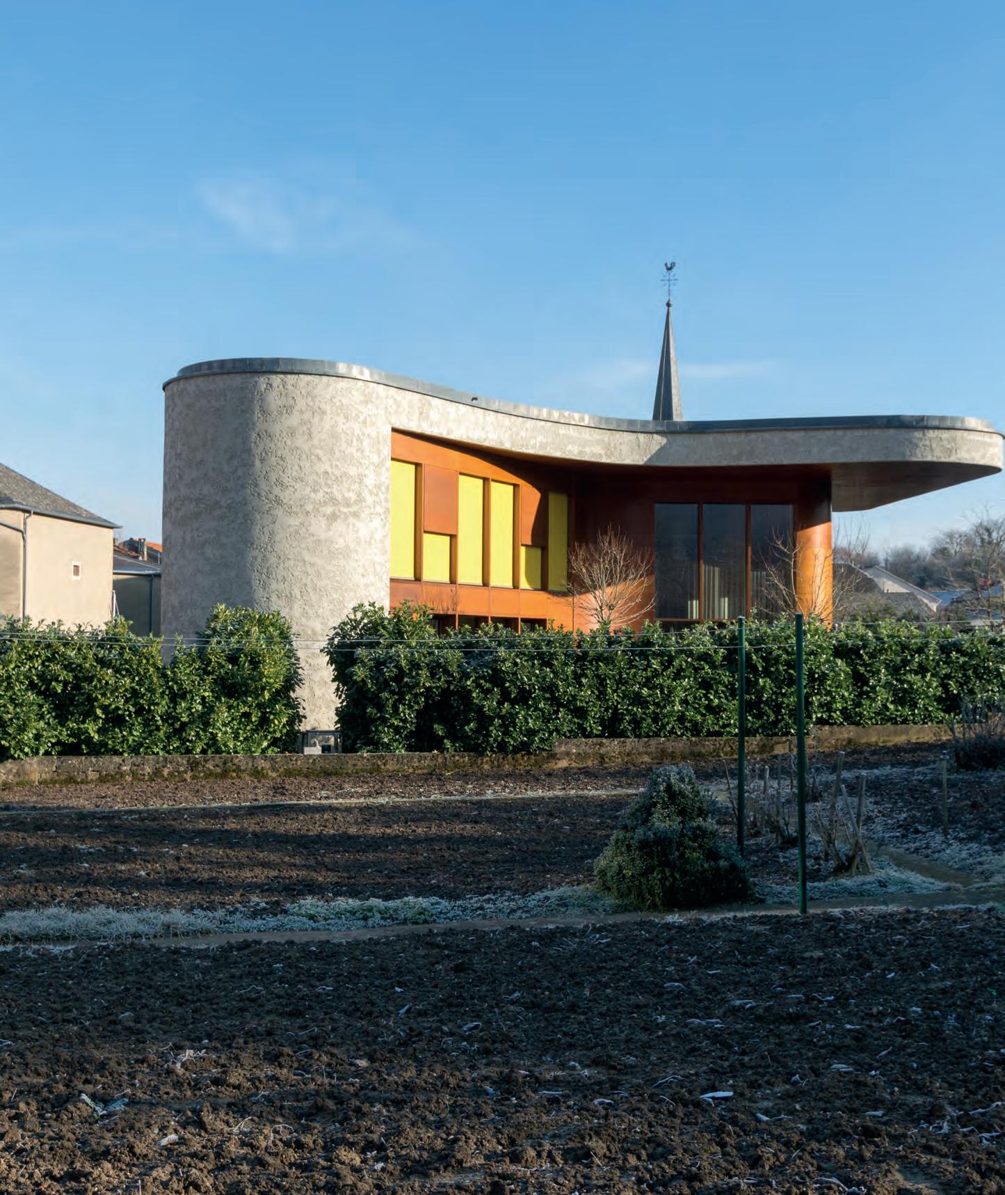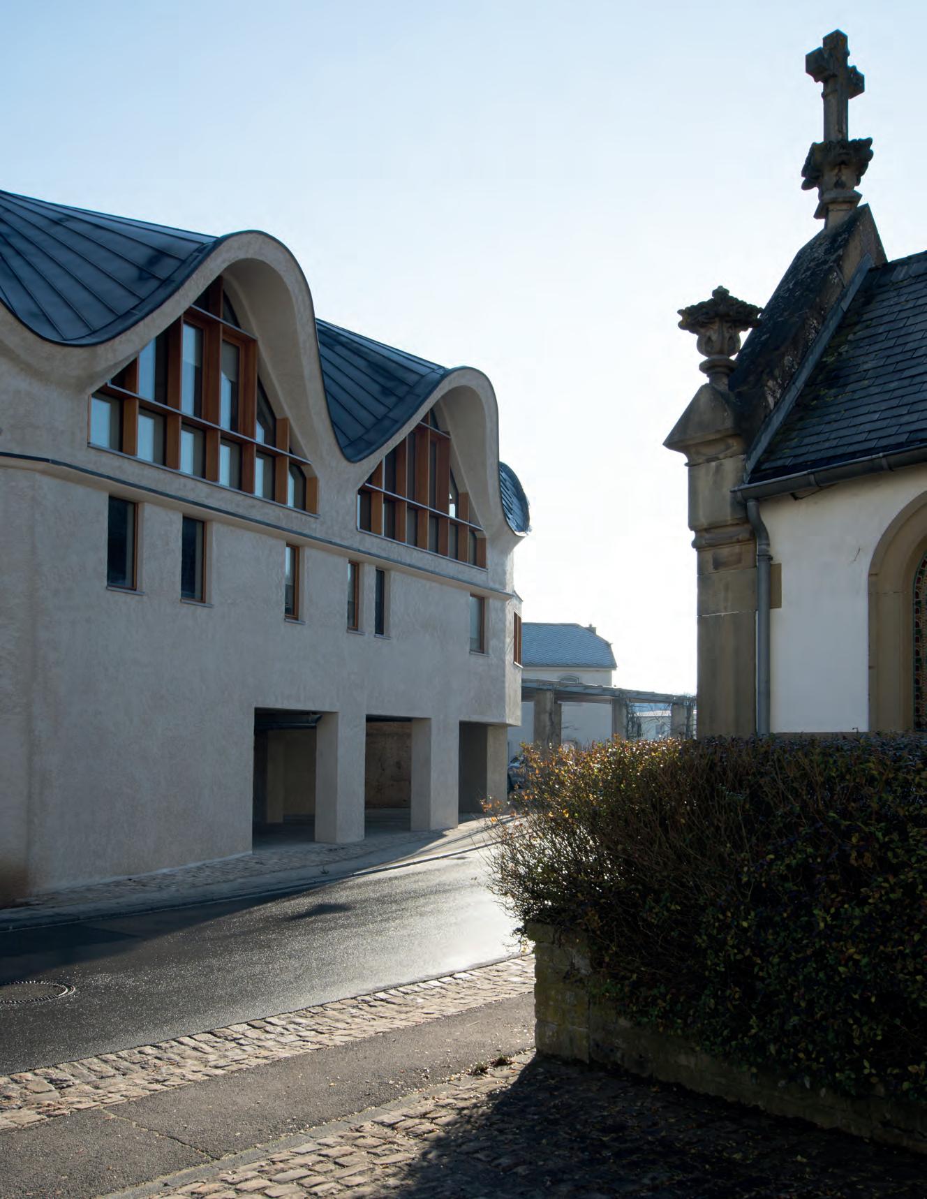 Sur le territoire de la Moselle, nous avons développé nos propres langages de la forme et du matériau. Nous nous sommes éloignés des constructions en béton, pour nous intéresser davantage au fameux crépi brut de la région, à base de sable de la Moselle, qu’on appelle le Schengener Putz ; nous l’utilisons pour les façades, selon l’ancienne tradition locale. Nous avons commencé à intégrer des éléments en bois dans nos constructions, afin que les bâtiments dégagent davantage de chaleur.