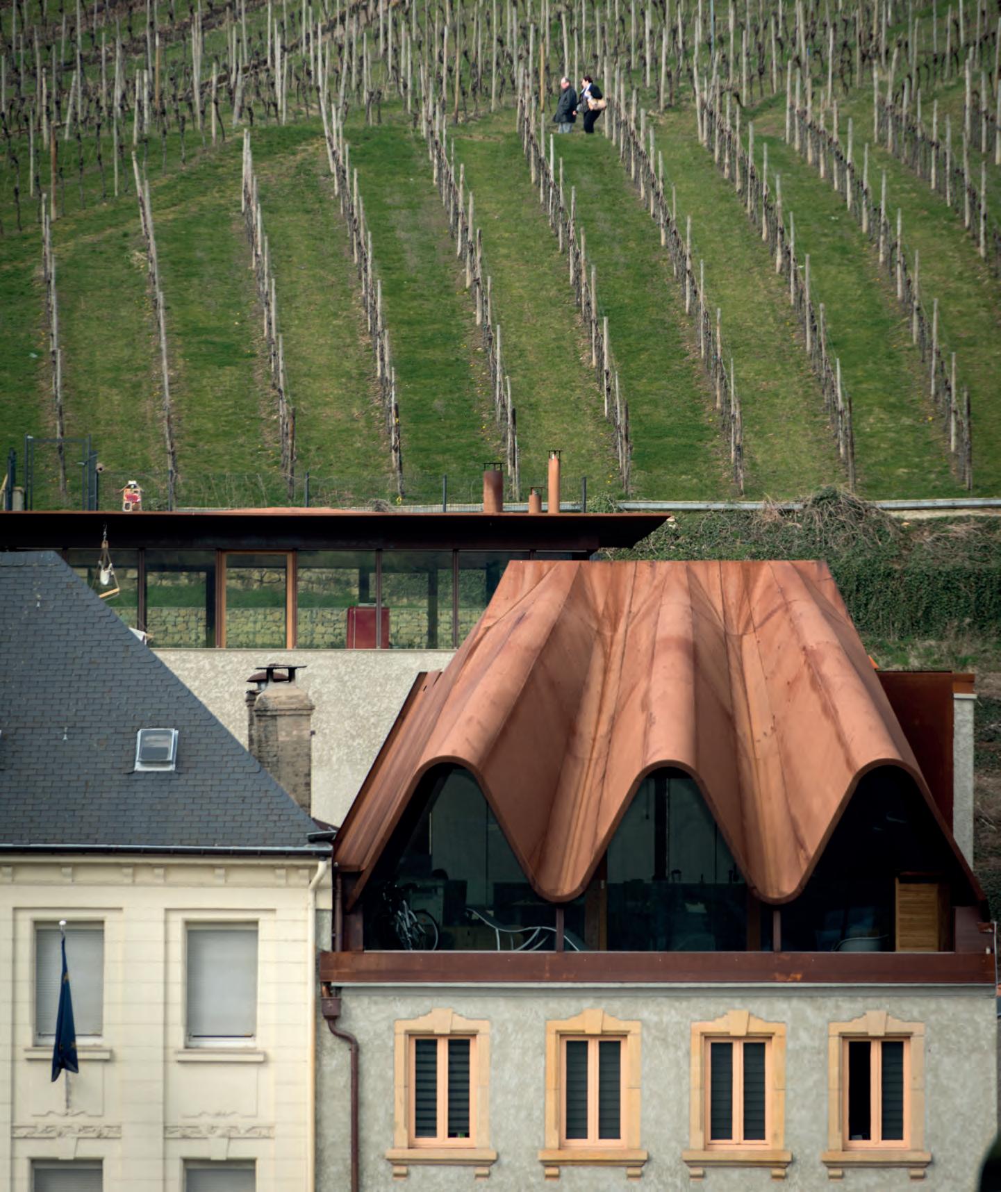 In the villages along the Moselle, where stone houses abound, we work to create harmony via materials and colours, where a contrast could spoil the pleasure of the view. These are certainly technical reflections, but we deem them important for the philosophy of building single-family houses in a region like the Moselle.