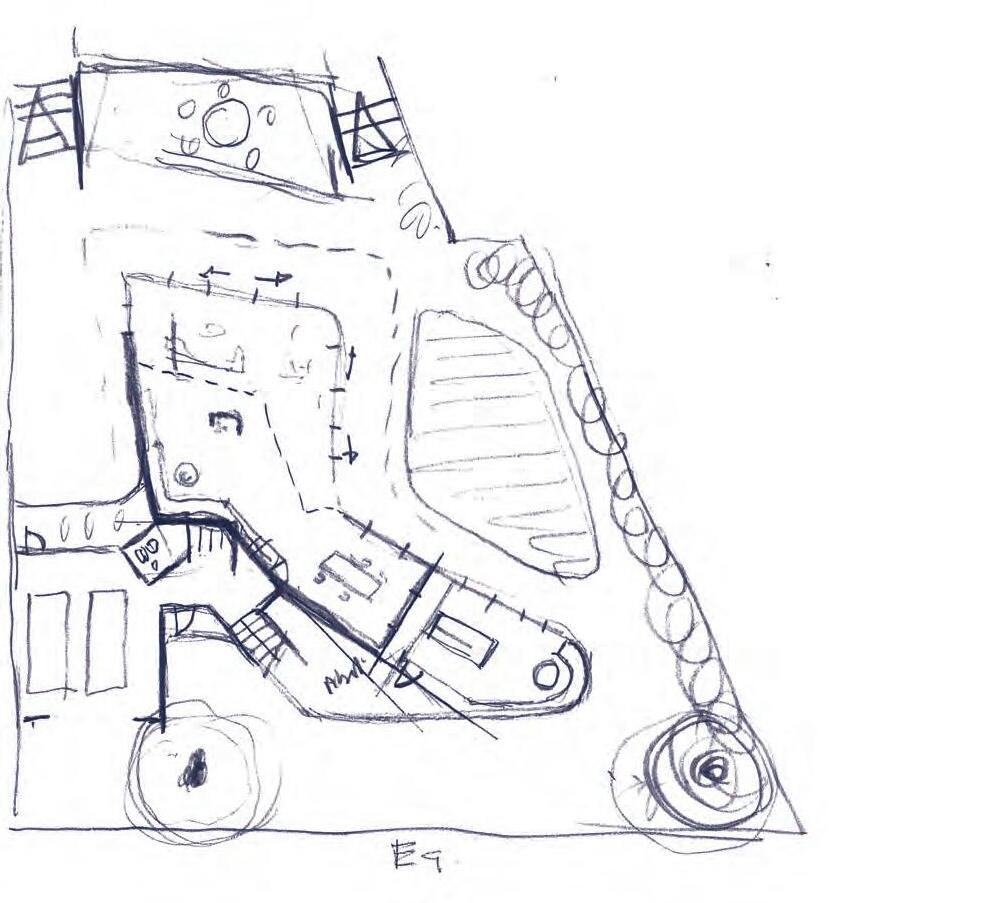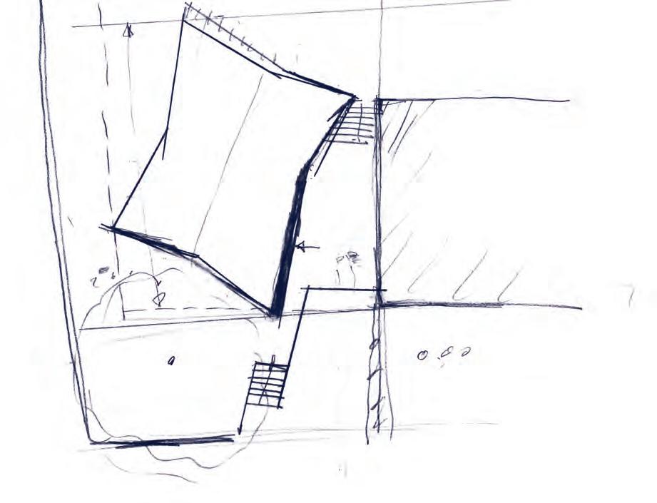 La conception prévoyait un vide dans le bâtiment même, une grande salle à manger située au centre