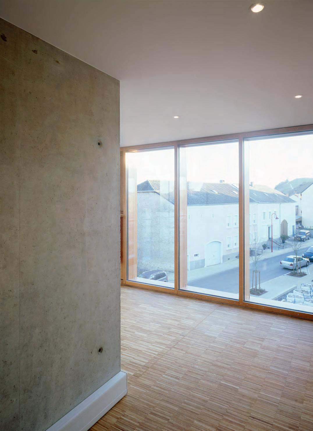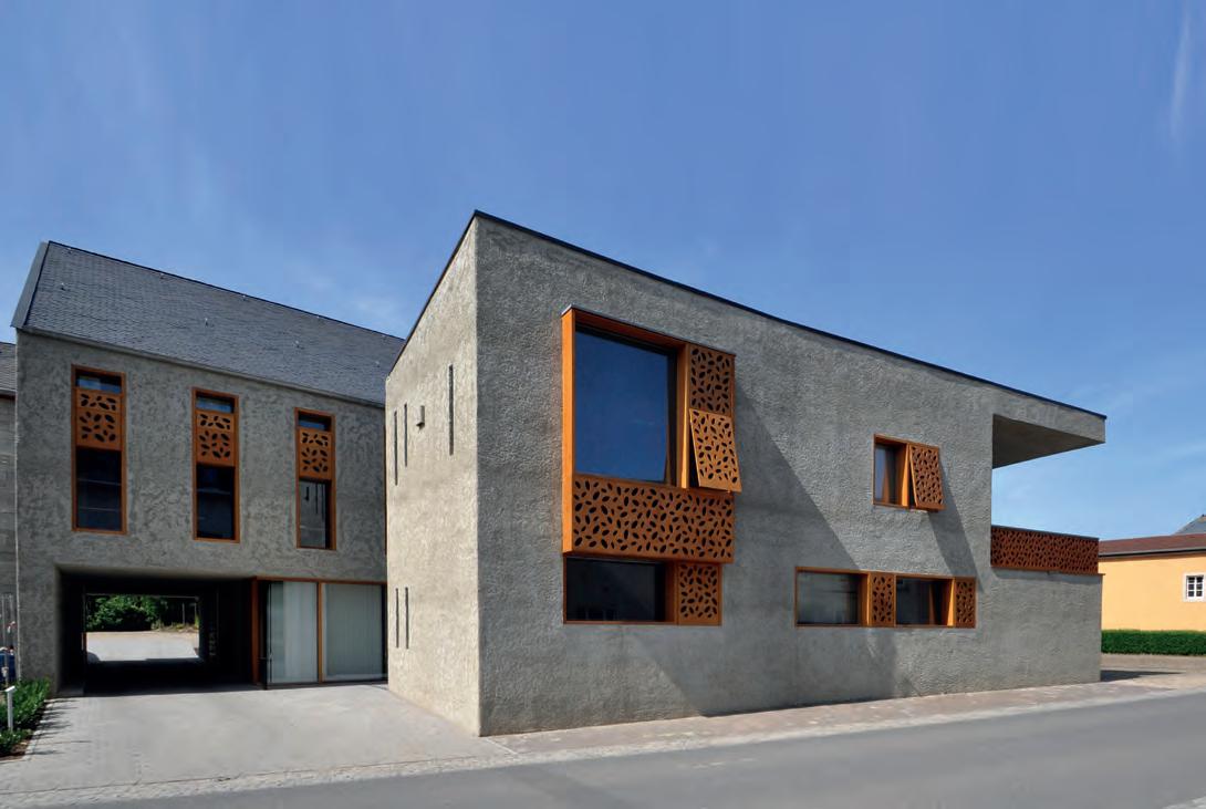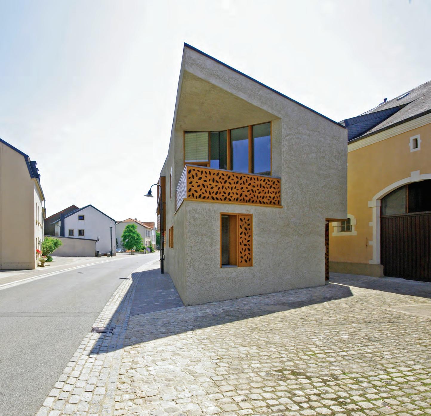 We built many houses and public buildings in the Moselle region in the mid2000s.In the Moselle region, we developed our own languages when it comes to shapes and materials. We moved away from concrete constructions to place greater emphasis on the region’s famous rough plaster made from Moselle sand, known as Schengener Putz, which we use for the façades according to the old local tradition. We started integrating wooden elements into our constructions in order for the buildings to release more heat.