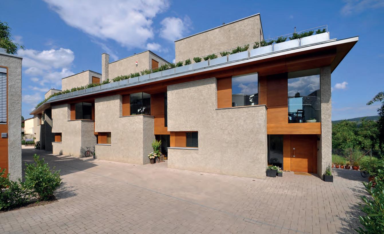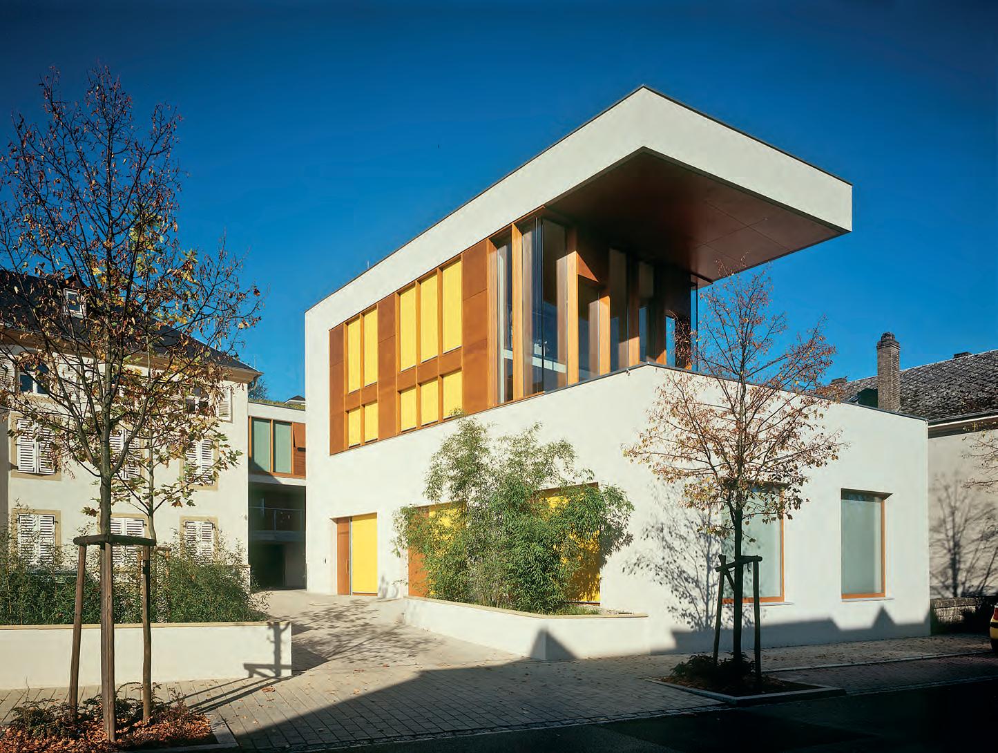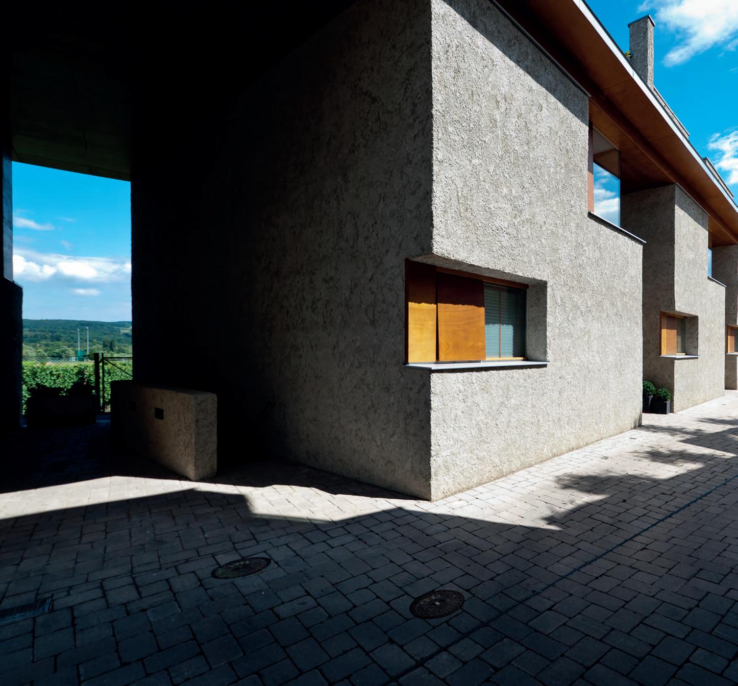 We built many houses and public buildings in the Moselle region in the mid2000s.In the Moselle region, we developed our own languages when it comes to shapes and materials. We moved away from concrete constructions to place greater emphasis on the region’s famous rough plaster made from Moselle sand, known as Schengener Putz, which we use for the façades according to the old local tradition. We started integrating wooden elements into our constructions in order for the buildings to release more heat.
