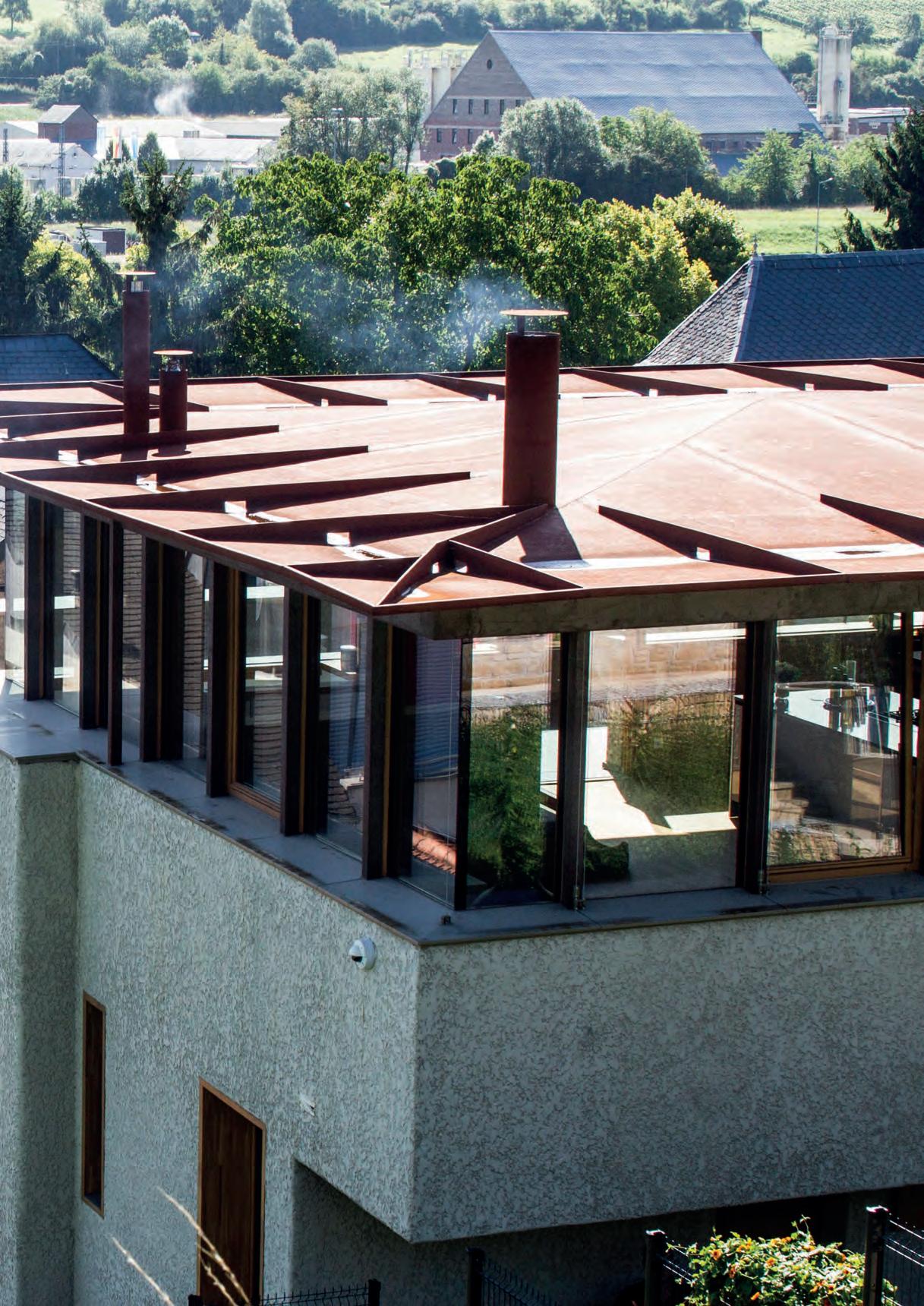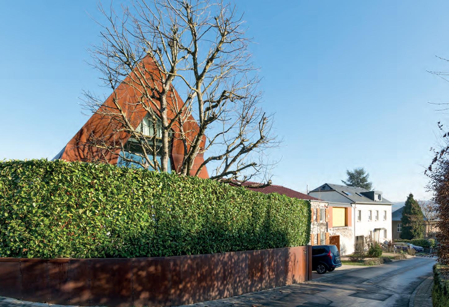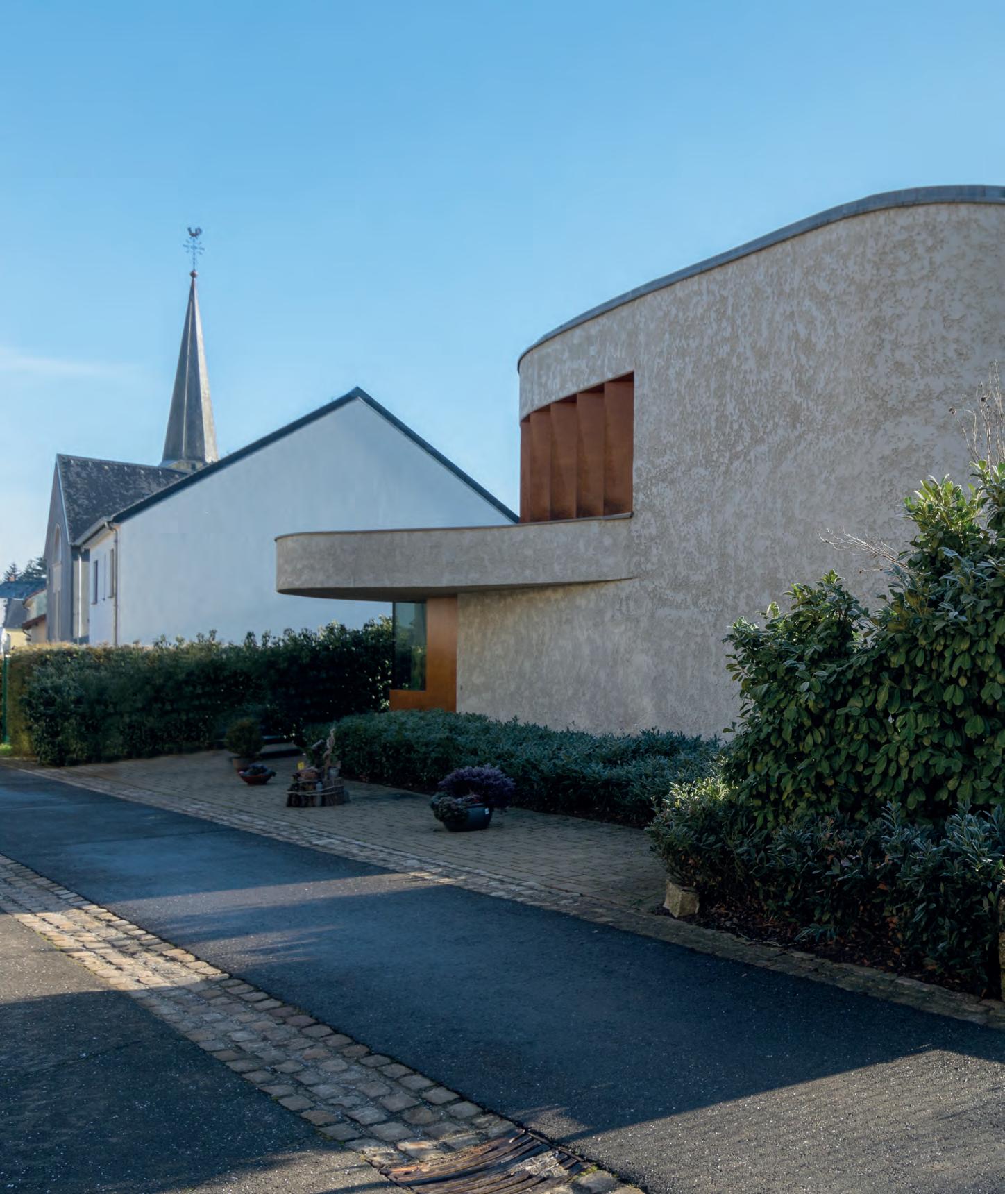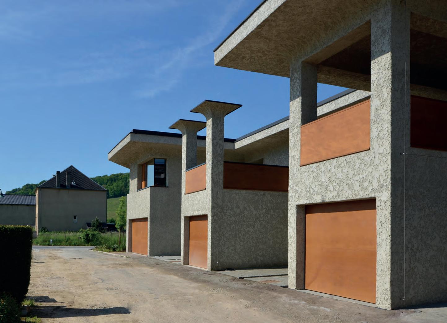 Dans les villages le long de la Moselle, où beaucoup d’habitations sont construites en pierre, nous travaillons à créer une harmonie grâce au matériau et à la couleur, là où un contraste aurait gâché le plaisir de la vue. Il s’agit certes de réflexions techniques, mais celles-ci nous semblent importantes pour la philosophie de la construction de maisons unifamiliales dans une région comme la Moselle.