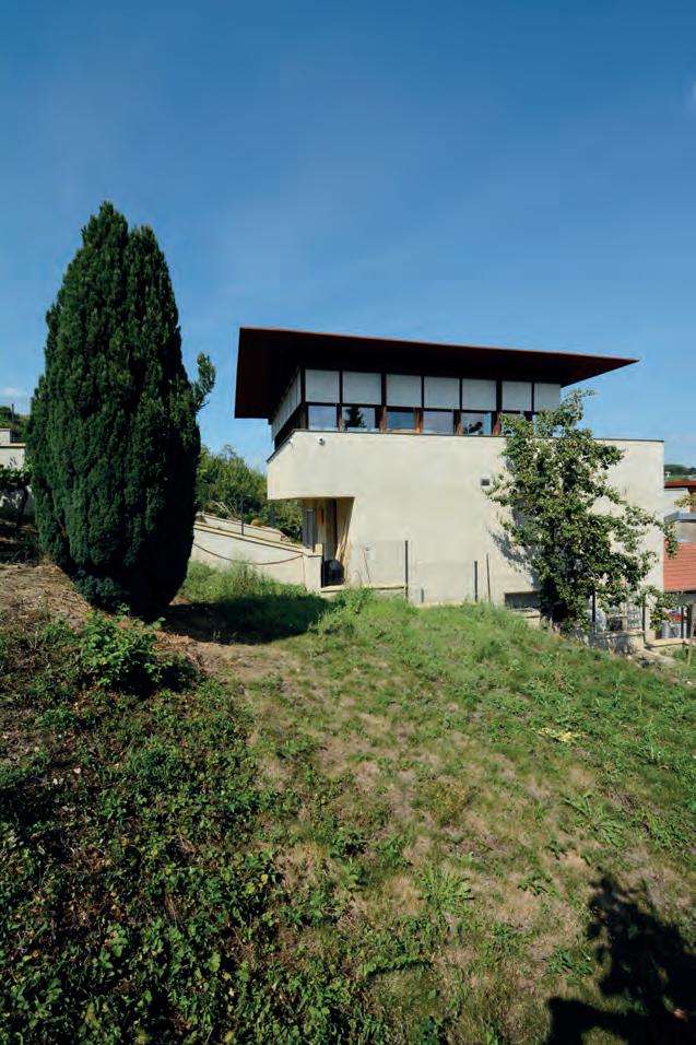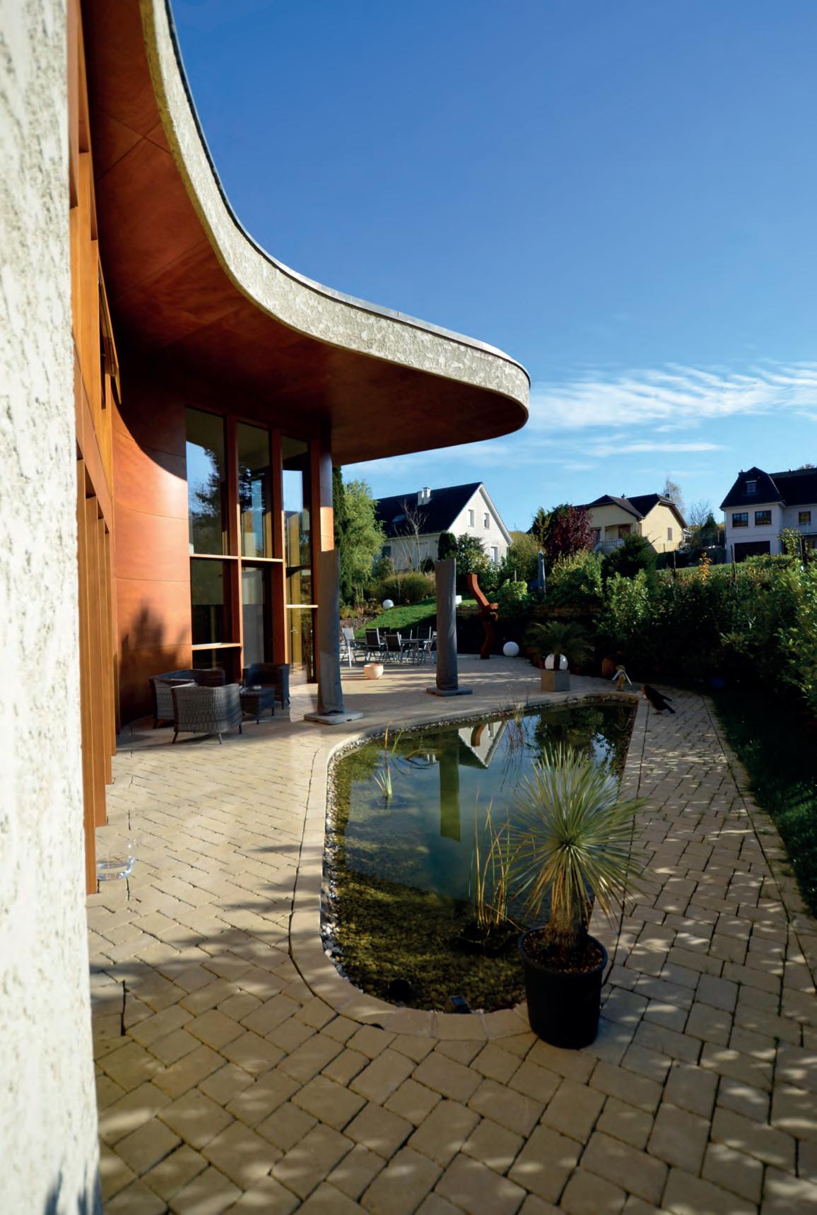 In Wellenstein, we built the Hirtt-Gasper House, which was completed between 1999 and 2001. It was based on the theories of the Greek philosopher Socrates – theories later taken up by Leon Battista Alberti (1404–1472), philosopher and architect of the Quattrocento – of the Mediterranean-style house, with a roof raised on the side where the sun shines, so that the rays can penetrate deep into the house. It is a two-storey, funnel-shaped house, facing south to capture the sun.