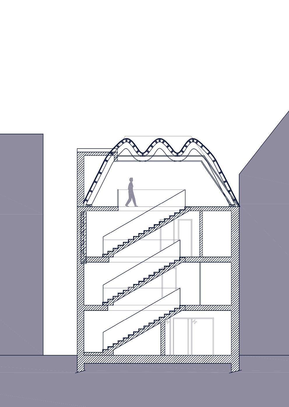 Based on this shape of the central room around which the other spaces gather and cluster – I consider this idea to be the original shape of all dwellings – we have built half a dozen other similar projects. A central space that is open at the front, featuring winter gardens at the back and lightwells to let in light from above; an idea we still use today in many buildings.
