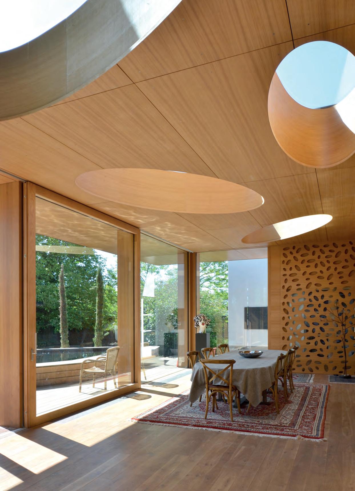 En nous basant sur cette forme de la pièce centrale autour de laquelle les autres espaces se regroupent et s’agglutinent – je considère cette idée comme la forme d’origine de toutes les habitations –, nous avons construit une demi-douzaine d’autres projets similaires. Un espace central ouvert sur le devant, avec des jardins d’hiver à l’arrière et des cages ouvertes en verre, pour laisser entrer la lumière depuis le haut ; une idée que nous utilisons encore aujourd’hui dans de nombreuses constructions.