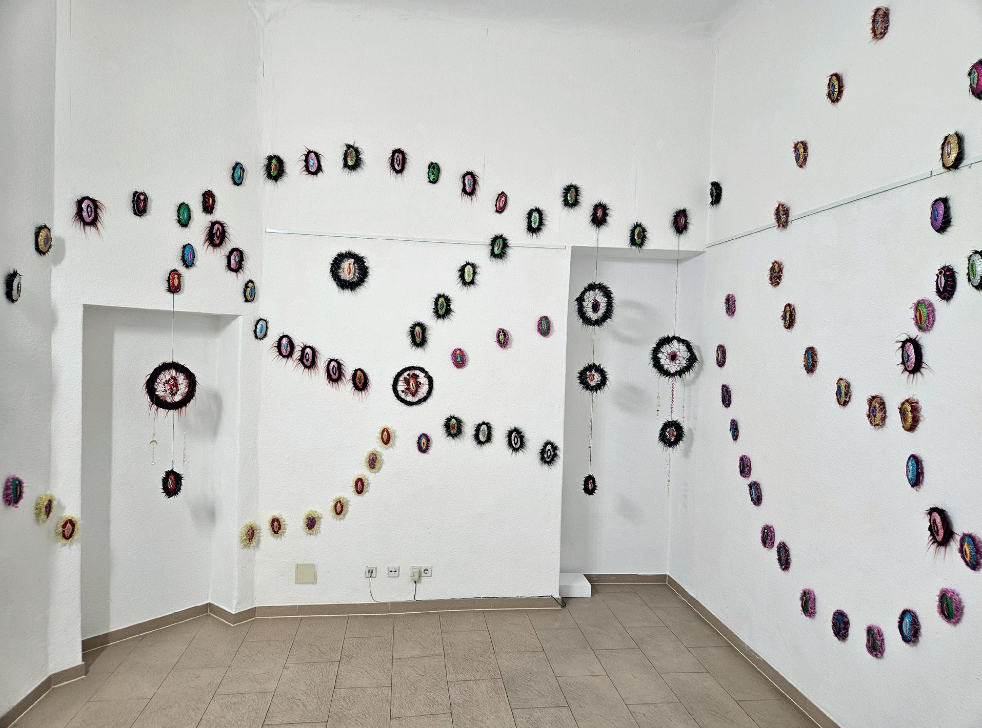 tin, miten kuraattorini kuvaili teoksiani kosmoksena ja viittasi puheessaan avaruuteen yllättävän monipuolisesti. Innostuin, sillä avaruuden käsitteet tuovat työhöni uusia mittakaavoja, muotoja ja sisältöä ja vievät sekä opintojani että työtäni taas uuteen odottamattomaan suuntaan. En hakenut opintoihin ajatellen, että toimisin samanaikaisesti kulttuuriorganisaation vetäjänä, kansainväliselle kentälle suuntautuvana taiteilijana ja (lähes)täysipäiväisenä opiskelijana. Ehkä siksi inspiraation on synnyttävä kaaoksesta, siihen oppiminen on ollut olosuhteiden pakko.