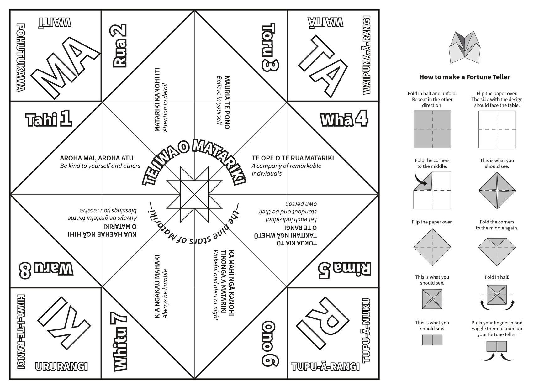 Matariki Fortune Teller: cut me out & colour me in