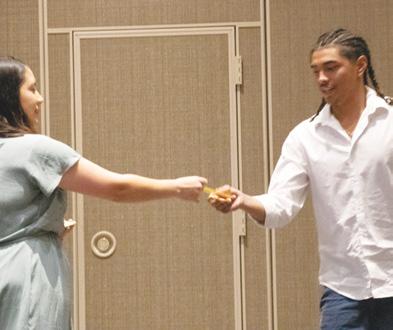 Dr. Casey Church, Ogitchedaw, Elder, Banai (Spiritual Leader), speaks at the Sponsor's dinner before the Veterans golf outing.