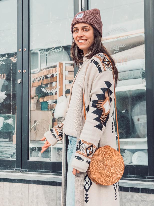 The Mia Sweater has a versatile style infused with the Peruvian textile artistry. We’ve gone a medium length, with a complementary backline; this doubles as a Fall, transition coat, and a year round sweater.