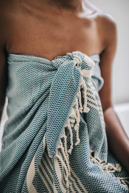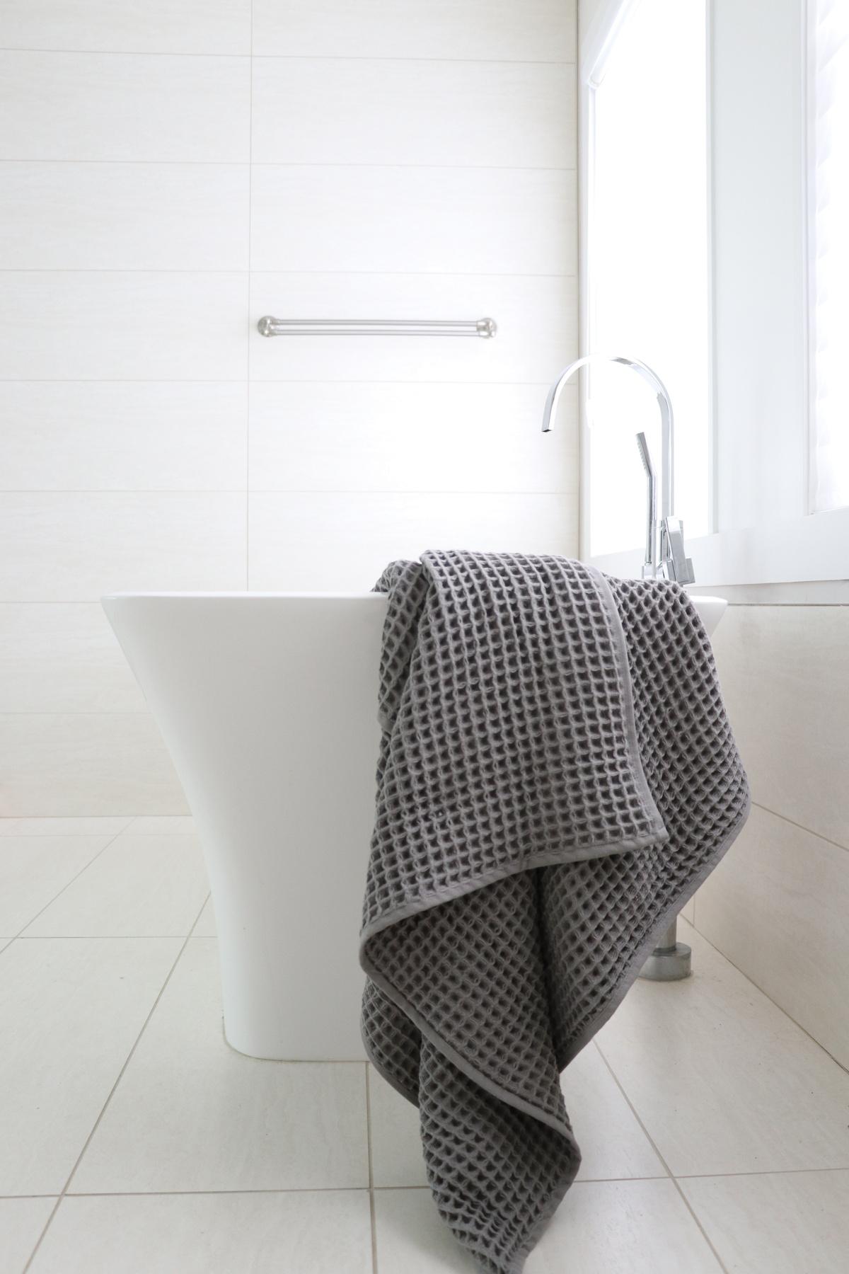 A thick waffle weave made with pure Turkish cotton offering a spa-quality aesthetic and feel.