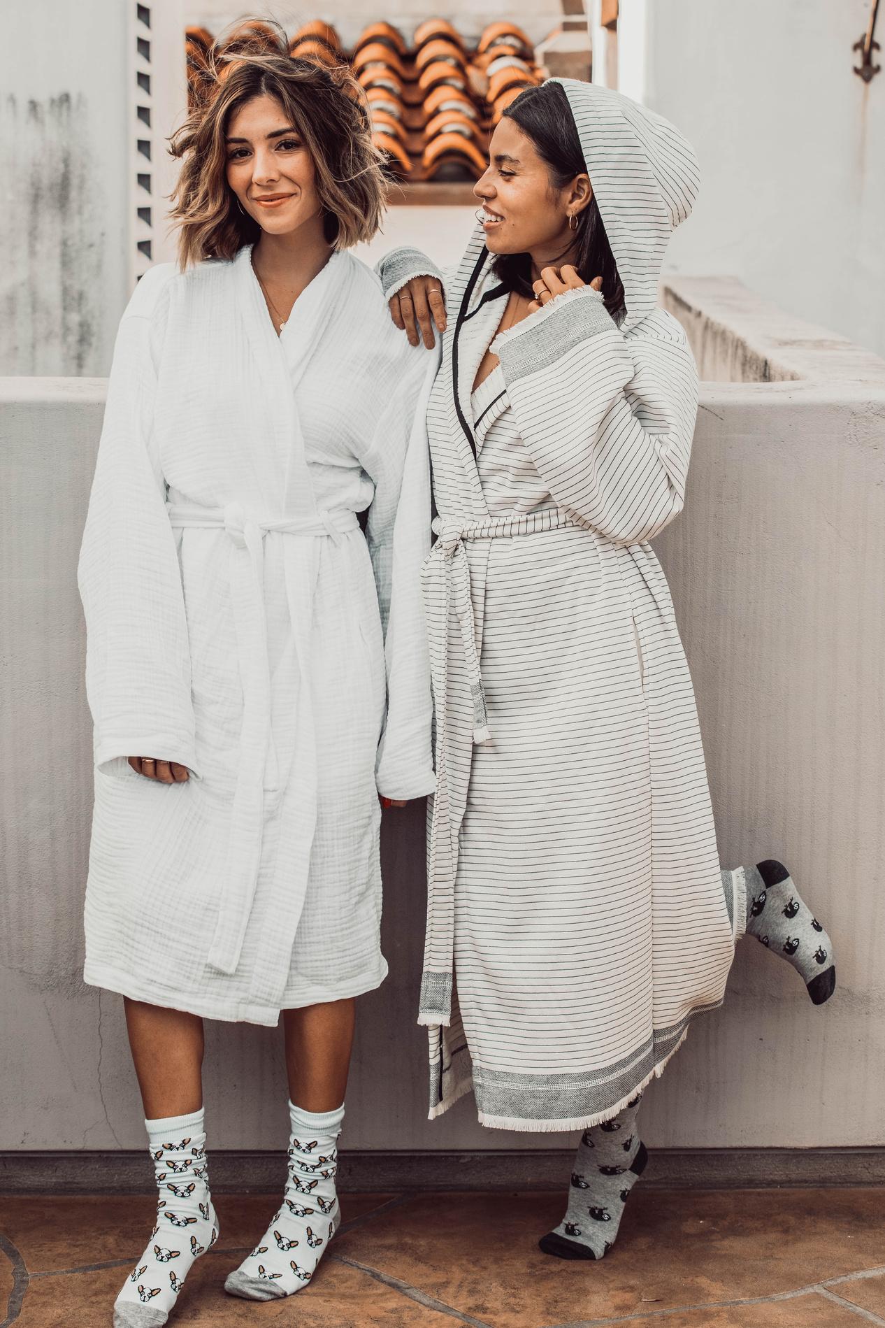 This is a collared, mid-length, pure crinkled Turkish cotton robe something that, once slipped on, feels so luxuriously comfortable.