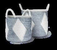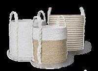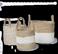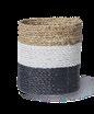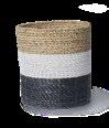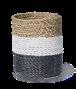 Seagrass & recycled plastic rope L: 10.6" D x 7.9" H. M: 8.6" D x 7.5" H. S: 6.3" D x 6.3" H.