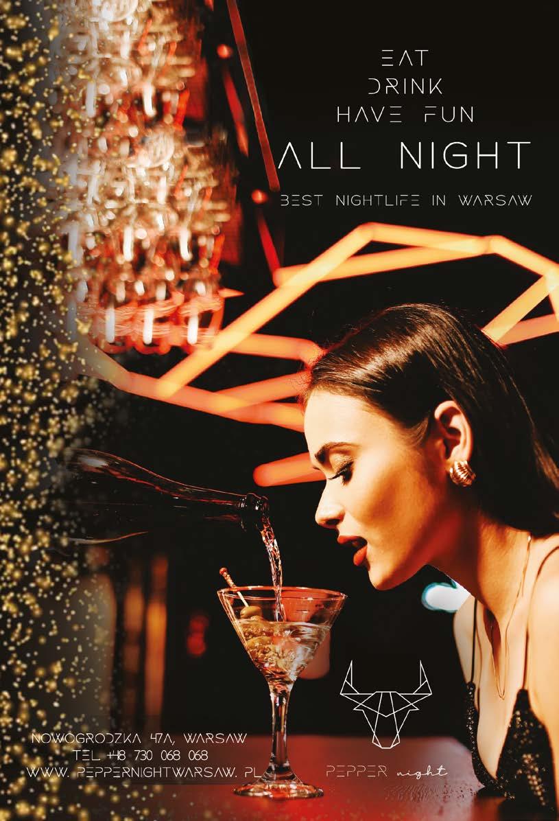 Cynar, a unique artichoke liqueur, and the mysterious P31. Executive Lounge is particularly recommended for private events, whether it’s for business or for pleasure, and their sumptuous food menu is here to support it Find delights such as burrata, eggplant mousse, beef sirloin tartare, and beef carpaccio, or impress your colleagues with an order of their gorgeously-prepared tapas!QC-7, ul. Krochmalna 59/ U3, tel. (+48) 690 41 12 29, www.browarywarszawskie. com.pl/wizytowka-executive-lounge. Open 17:0000:00; Fri, Sat 17:00-01:00.